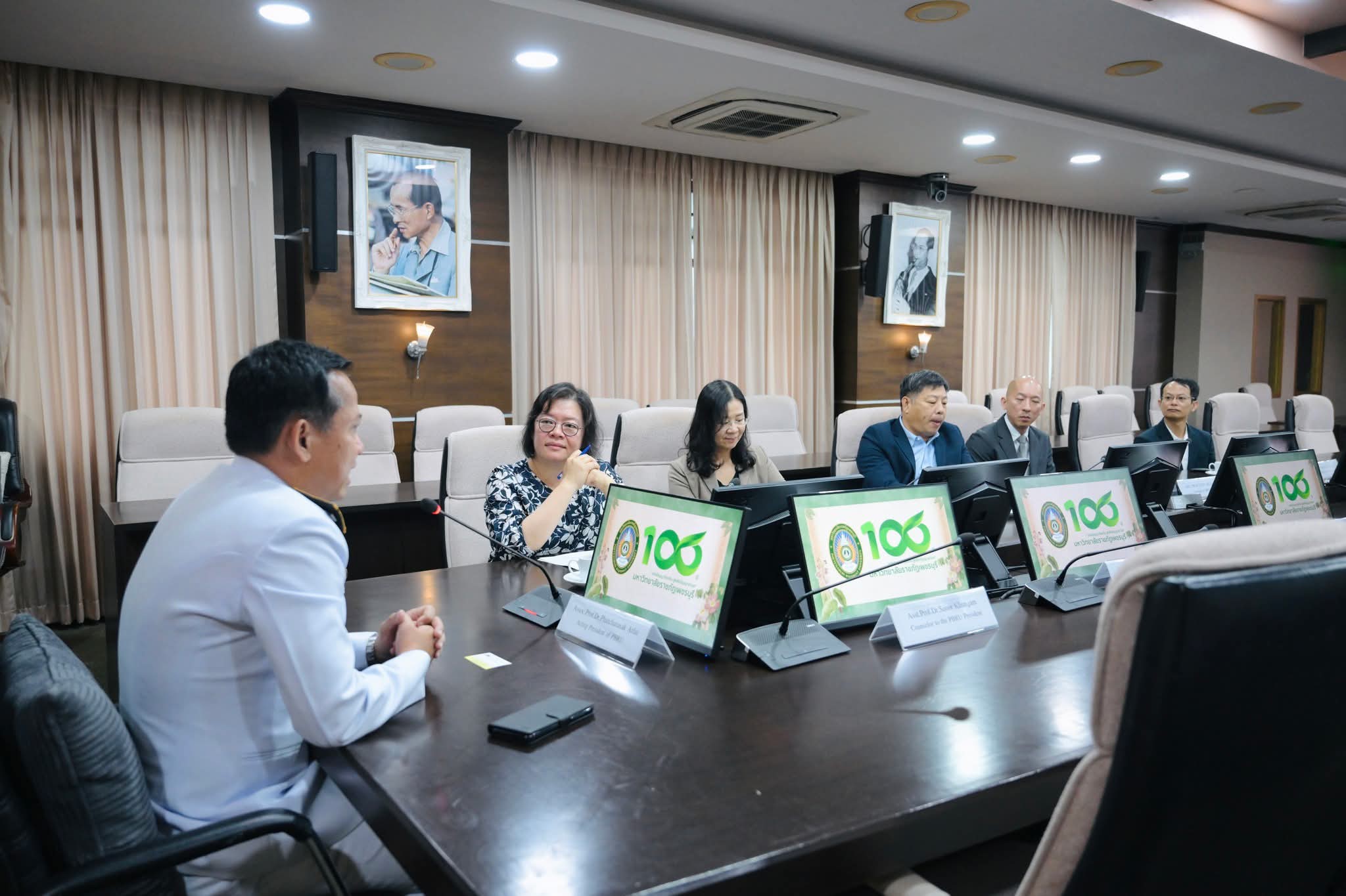 บุคลากรจากมหาวิทยาลัยตามความร่วมมือ National Pingtung University of Science and Technology (NPUST), Taiwan จำนวน 4 ท่าน และ Dr. Ko Jui-Ching ผู้อำนวยการ International Talent Circulation Base – Bangkok Office ประชุมหารือร่วมกับ รศ.ดร.พัชรศักดิ์ อาลัย รักษาราชการแทนอธิการบดีมหาวิทยาลัยราชภัฏเพชรบุรี เพื่อเข้าร่วมสนับสนุนด้านวิชาการของหลักสูตรใหม่ที่ได้รับอนุมัติจากมหาวิทยาลัยราชภัฏเพชรบุรี จำนวน 2 หลักสูตร ได้แก่ หลักสูตรวิทยาศาสตร์การกีฬาและการออกกำลังกาย คณะครุศาสตร์ (Sports Science and Exercise Science, Faculty of Education) และหลักสูตรอาหารสร้างสรรค์และการจัดการบริการอาหาร วิทยาลัยนวัตกรรมอาหารและอุตสาหกรรมบริการ (Creative Gastronomy and Food Service Program, College of Food and Hospitality Innovation)