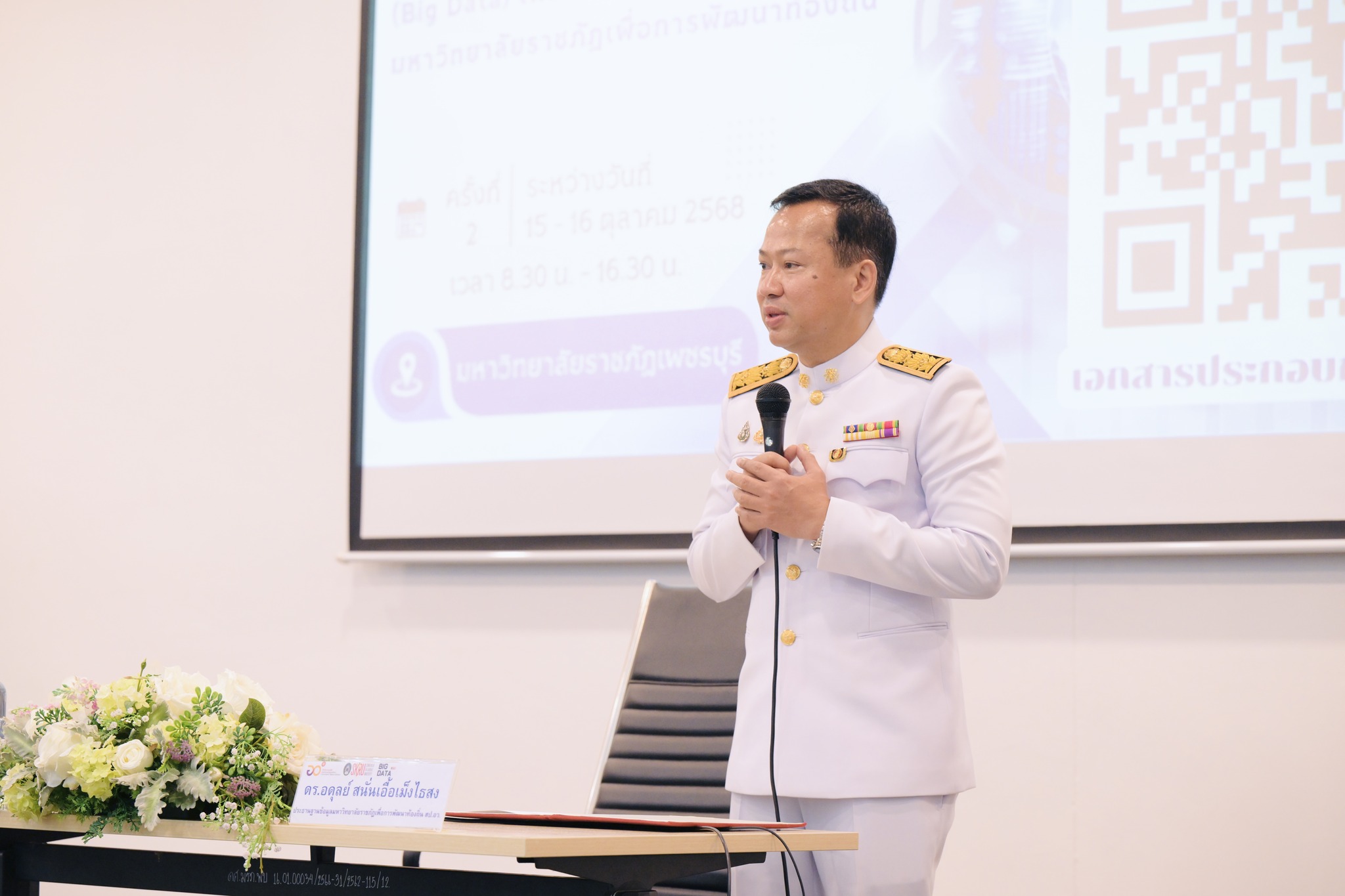 วันที่ 15 ตุลาคม 2568 ณ ห้องประชุมกาญจนา บุญส่ง ชั้น 1 อาคารศูนย์พัฒนาวิชาชีพครู คณะครุศาสตร์ มหาวิทยาลัยราชภัฎเพชรบุรี รศ.ดร.พัชรศักดิ์ อาลัย รักษาราชการแทนอธิการบดีมหาวิทยาลัยราชภัฏเพชรบุรี กล่าวให้การต้อนรับผู้เข้าร่วมโครงการอบรมเชิงปฏิบัติการการใช้งานระบบบริหารจัดการข้อมูลขนาดใหญ่ (Big Data) เพื่อขับเคลื่อนยุทธศาสตร์มหาวิทยาลัยราชภัฏเพื่อการพัฒนาท้องถิ่น โดยมีผู้บริหาร คณาจารย์และบุคลากรในภูมิภาคตะวันตก 3 แห่ง ประกอบด้วย มหาวิทยาลัยราชภัฏเพชรบุรี มหาวิทยาลัยราชภัฏหมู่บ้านจอมบึง และมหาวิทยาลัยราชภัฏกาญจนบุรี เข้าร่วม
