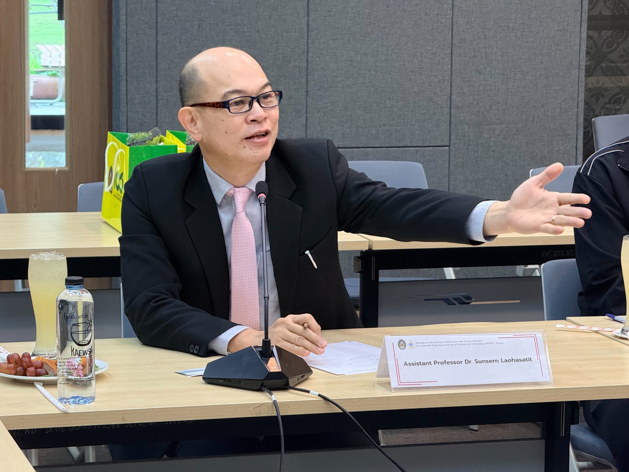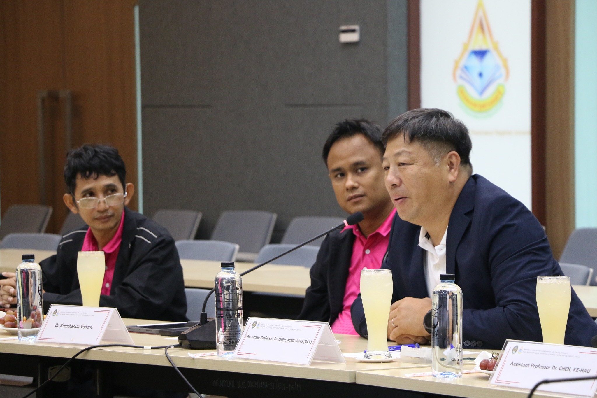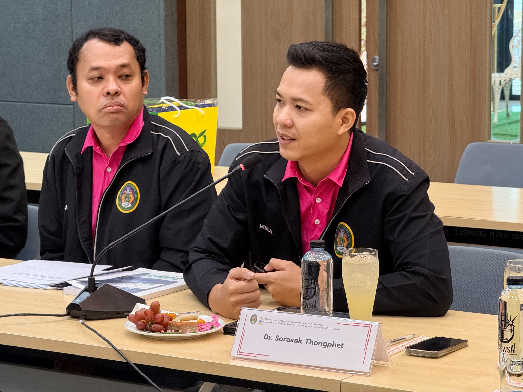 โดยได้รับเกียรติจาก ผศ.ดร.เสนาะ กลิ่นงาม ที่ปรึกษาอธิการบดีมหาวิทยาลัยราชภัฏเพชรบุรี กล่าวต้อนรับคณะผู้แทนจาก NPUST ได้แก่ Associate Professor Dr. Chen, Ming Hung (Ray), Department of Recreational Sport and Health Promotion และ Assistant Professor Dr. Chen, Ke-Hau, Department of Recreational Sport and Health Promotion