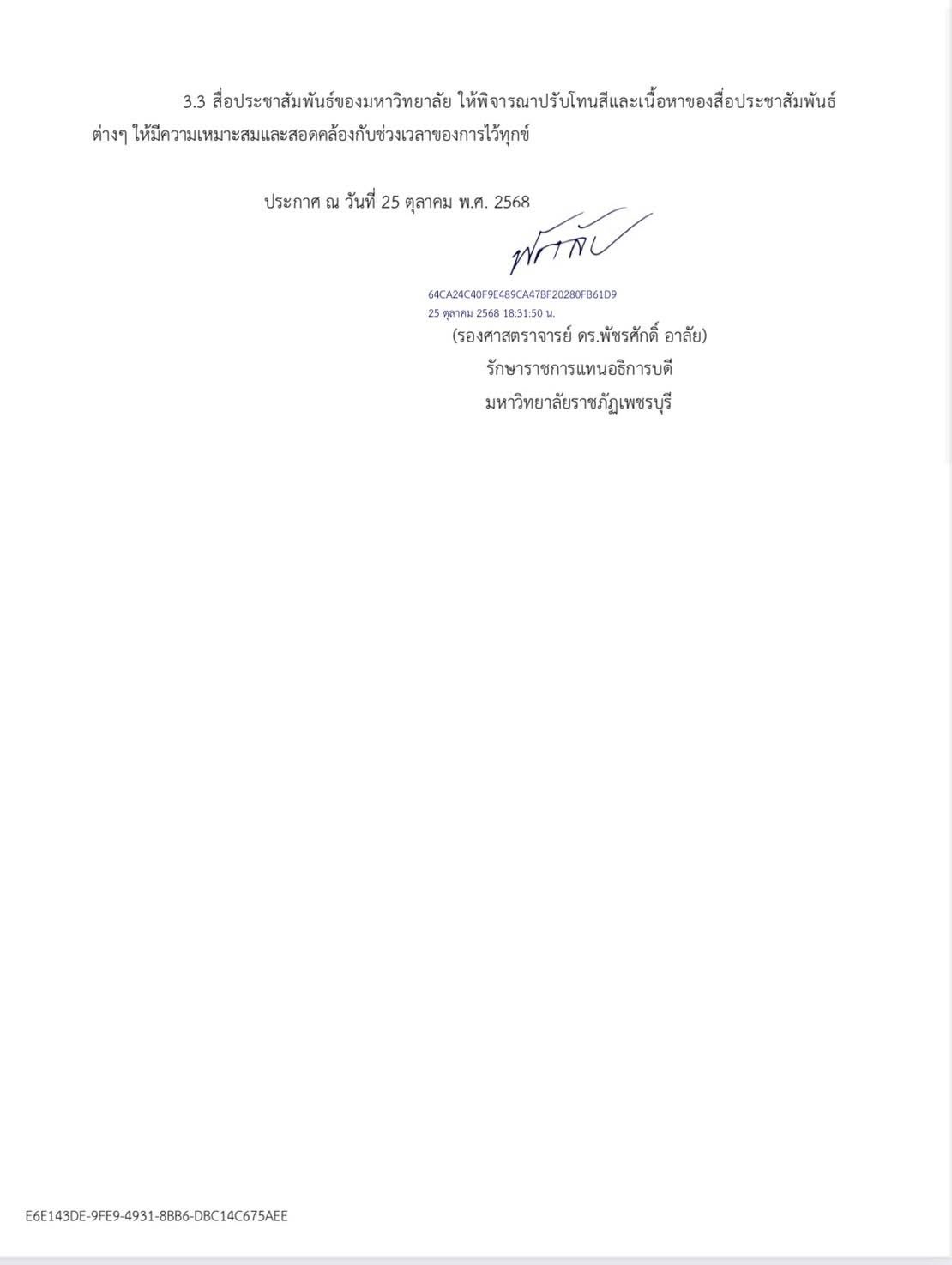 ประกาศมหาวิทยาลัยราชภัฏเพชรบุรี