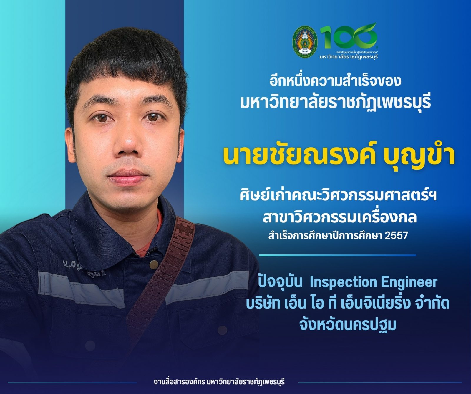 อีกหนึ่งความสำเร็จของมหาวิทยาลัยราชภัฏเพชรบุรี 29 ตุลาคม 202529 ตุลาคม 2025นายพศวีร์ คอนจอหอข่าวประชาสัมพันธ์, ข่าวสำหรับบุคลากร, ข่าวสื่อสารองค์กร จำนวนผู้ชม : 9 อีกหนึ่งความสำเร็จของมหาวิทยาลัยราชภัฏเพชรบุรี โดย นายชัยณรงค์ บุญขำ ศิษย์เก่าคณะวิศวกรรมศาสตร์และเทคโนโลยีอุตสาหกรรม สาขาวิศวกรรมเครื่องกล สำเร็จการศึกษาปีการศึกษา 2557 ปัจจุบันทำงาน Inspection Engineer บริษัท เอ็น ไอ ที เอ็นจิเนียริ่ง จำกัด จังหวัดนครปฐม ประสบความสำเร็จได้ที่ มหาวิทยาลัยราชภัฏเพชรบุรี เพราะเรา “PBRU Earn While Learn” เรียนจริง ปฏิบัติจริง มีรายได้ระหว่างเรียน PBRU เปิดรับสมัครแล้ว สนใจสาขาไหน สามารถติด่อ หรือ สมัครเข้ามาเป็นครอบครัวเดียวกับเราได้ตามลิงก์ด้านล่างนี้ สมัครออนไลน์ ง่ายนิดเดียว คลิกเลย https://reg.pbru.ac.th สอบถามเพิ่มเติม หน่วยรับสมัคร สำนักส่งเสริมวิชาการและงานทะเบียน โทร 032 708 640 #มหาวิทยาลัยราชภัฏเพชรบุรี Facebook iconFacebookTwitter iconTwitterLINE iconLine