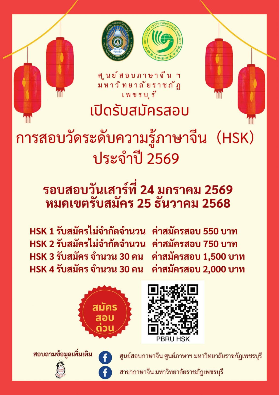 ศูนย์สอบวัดระดับภาษาจีน มหาวิทยาลัยราชภัฏเพชรบุรี เปิดรับสมัครสอบ HSK, HSKK 3 พฤศจิกายน 20253 พฤศจิกายน 2025นายพศวีร์ คอนจอหอข่าวสื่อสารองค์กร จำนวนผู้ชม : 44 ขอแสดงความยินดีกับคณาจารย์สาขาวิชาศิลปะการออกแบบคณะมนุษยศาสตร์และสังคมศาสตร์ ศูนย์สอบวัดระดับภาษาจีน มหาวิทยาลัยราชภัฏเพชรบุรี เปิดรับสมัครสอบ HSK, HSKK สมัครสอบได้ตั้งแต่บัดนี้ – 25 ธันวาคม 2568จัดสอบวันเสาร์ ที่ 24 มกราคม 2569แสกนQR-CODE หรือสมัครได้ที่ลิงก์ https://forms.gle/TcFMSbpb6bpFjFe47 Facebook iconFacebookTwitter iconTwitterLINE iconLine