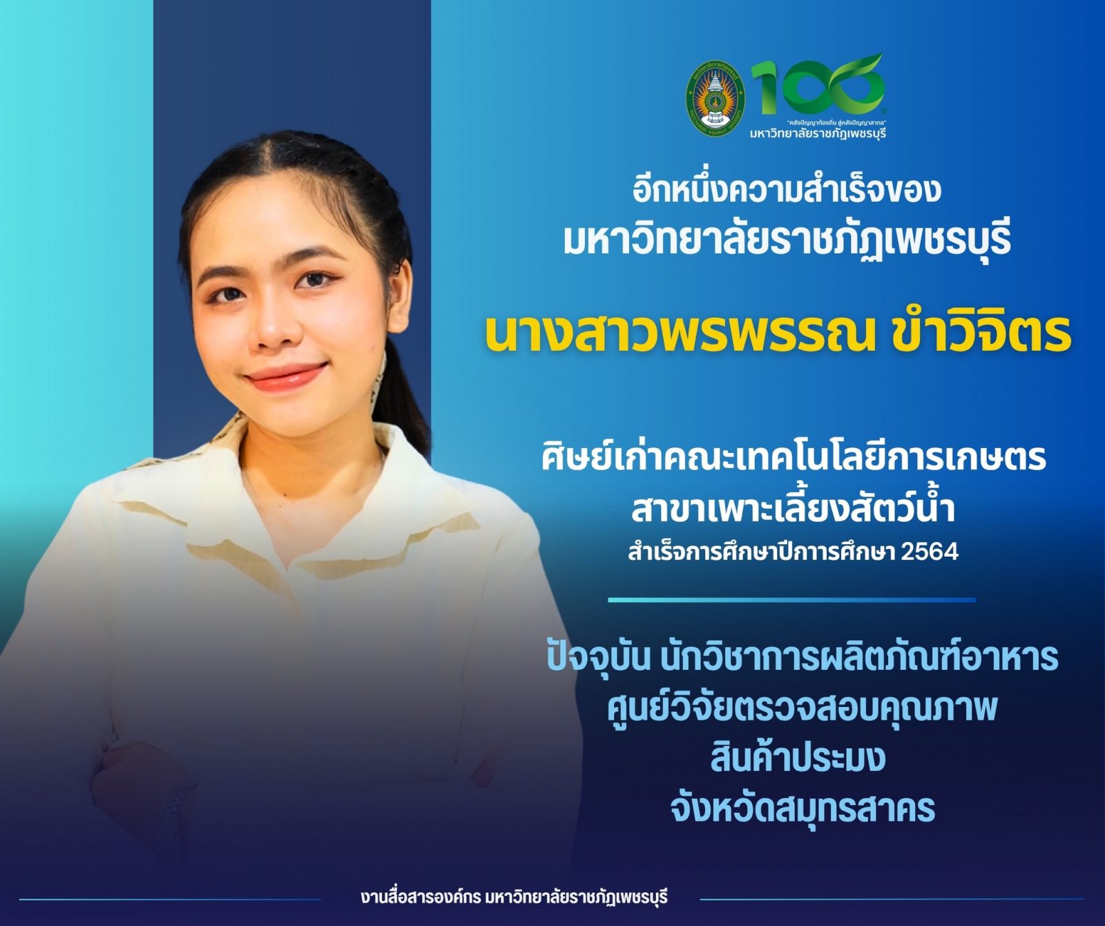อีกหนึ่งความสำเร็จของมหาวิทยาลัยราชภัฏเพชรบุรี 3 พฤศจิกายน 20253 พฤศจิกายน 2025นายพศวีร์ คอนจอหอข่าวประชาสัมพันธ์, ข่าวสำหรับบุคลากร, ข่าวสื่อสารองค์กร จำนวนผู้ชม : 2 อีกหนึ่งความสำเร็จของมหาวิทยาลัยราชภัฏเพชรบุรี โดย นางสาวพรพรรณ ขำวิจิตร ศิษย์เก่าคณะเทคโนโลยีการเกษตร สาขาเพาะเลี้ยงสัตว์น้ำประสบความสำเร็จได้ที่ มหาวิทยาลัยราชภัฏเพชรบุรีเพราะเรา “PBRU Earn While Learn”เรียนจริง ปฏิบัติจริง มีรายได้ระหว่างเรียนPBRU เปิดรับสมัครแล้วจ้าาาา สนใจสาขาไหน แอดไลน์มาคุยได้เลย สมัครออนไลน์ ง่ายนิดเดียว คลิกเลย https://reg.pbru.ac.th สอบถามเพิ่มเติมหน่วยรับสมัคร สำนักส่งเสริมวิชาการและงานทะเบียนโทร 032 708 640 Facebook iconFacebookTwitter iconTwitterLINE iconLine