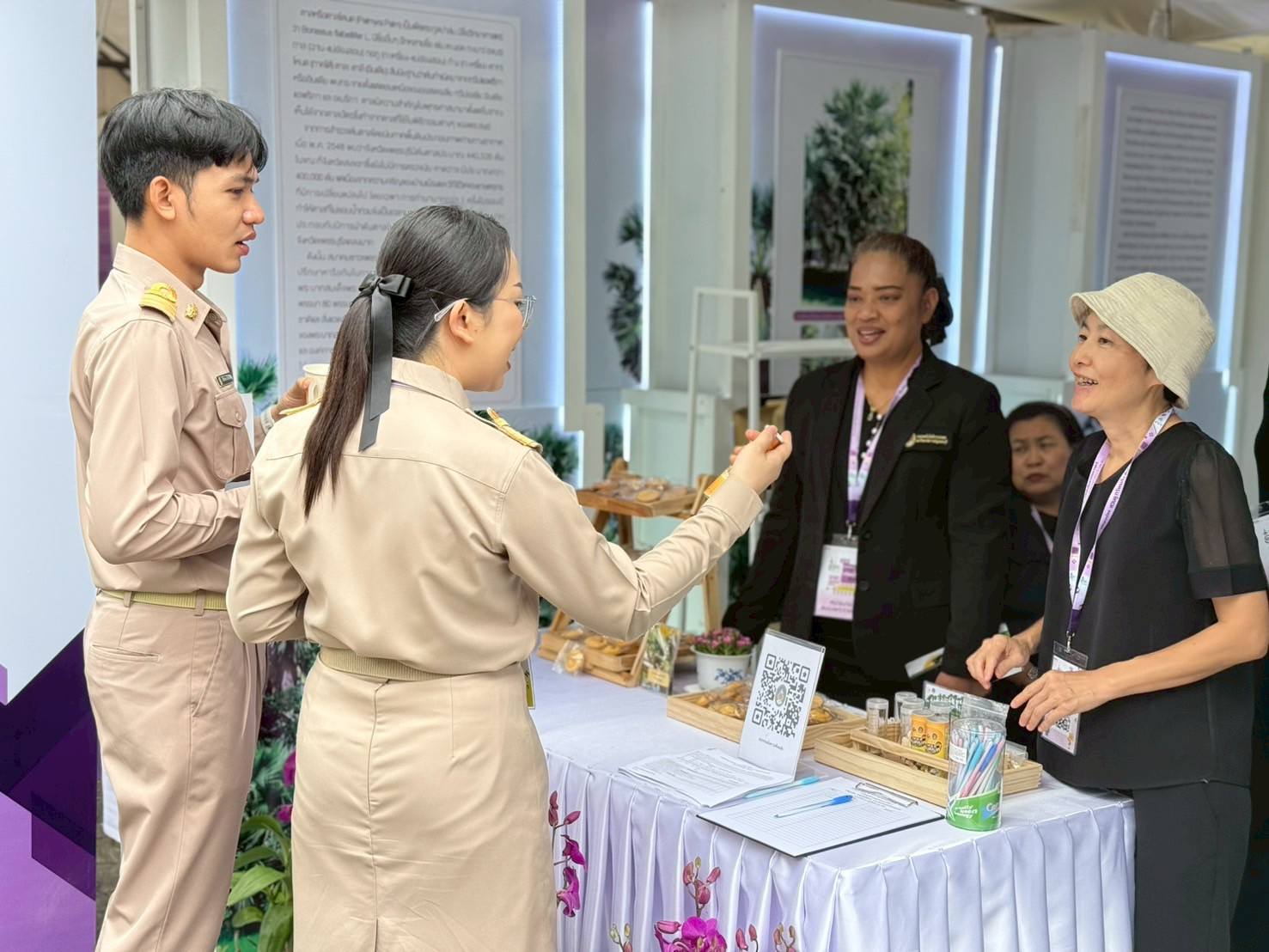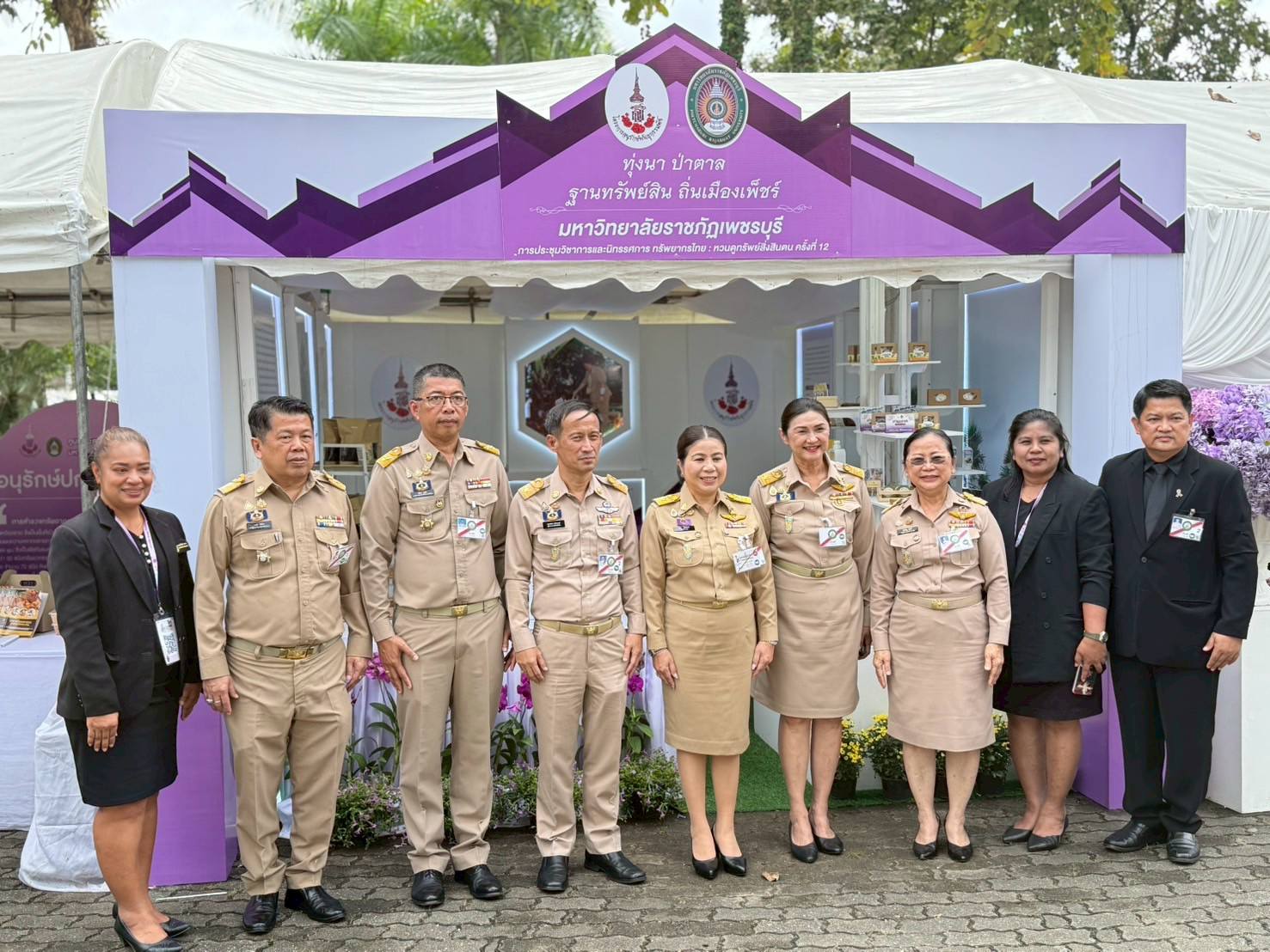 โอกาสนี้ มหาวิทยาลัยราชภัฏเพชรบุรีนำเสนอผลการดำเนินงานภายใต้หัวข้อ “ทุ่งนาป่าตาล ฐานทรัพย์สิน ถิ่นเมืองเพ็ชร์” ประกอบด้วย ผลงานและผลิตภัณฑ์ต่าง ๆ ภายใต้การดำเนินงานในปีงบประมาณ 2567 – 2568 เพื่อเป็นการเทิดพระเกียรติ สืบสานพระราชปณิธาน สร้างความเข้าใจและเห็นคุณค่าตระหนักถึงความสำคัญของทรัพยากร