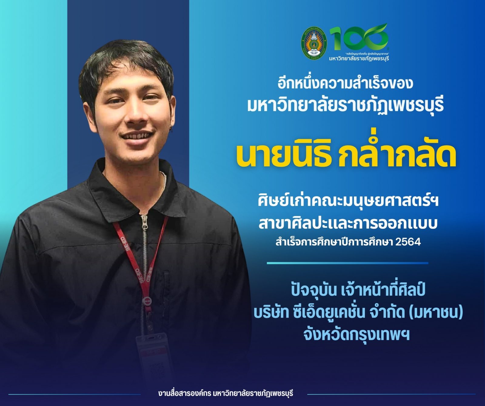อีกหนึ่งความสำเร็จของมหาวิทยาลัยราชภัฏเพชรบุรี 5 พฤศจิกายน 20255 พฤศจิกายน 2025นายพศวีร์ คอนจอหอข่าวประชาสัมพันธ์, ข่าวสำหรับบุคลากร, ข่าวสื่อสารองค์กร จำนวนผู้ชม : 3 อีกหนึ่งความสำเร็จของมหาวิทยาลัยราชภัฏเพชรบุรี โดย นายนิธิ กล่ำกลัด ศิษย์เก่าคณะมนุษยศาสตร์และสังคมศาสตร์ สาขาศิลปะและการออกแบบ สำเร็จการศึกษาปีการศึกษา 2564 ปัจจุบันเจ้าหน้าที่ศิลป์ บริษัท ซีเอ็ดยูเคชั่น จำกัด (มหาชน) จังหวัดกรุงเทพฯประสบความสำเร็จได้ที่ มหาวิทยาลัยราชภัฏเพชรบุรีเพราะเรา “PBRU Earn While Learn”เรียนจริง ปฏิบัติจริง มีรายได้ระหว่างเรียนPBRU เปิดรับสมัครแล้วจ้าาาา สนใจสาขาไหน แอดไลน์มาคุยได้เลย สมัครออนไลน์ ง่ายนิดเดียว คลิกเลย https://reg.pbru.ac.th สอบถามเพิ่มเติมหน่วยรับสมัคร สำนักส่งเสริมวิชาการและงานทะเบียนโทร 032 708 640 Facebook iconFacebookTwitter iconTwitterLINE iconLine