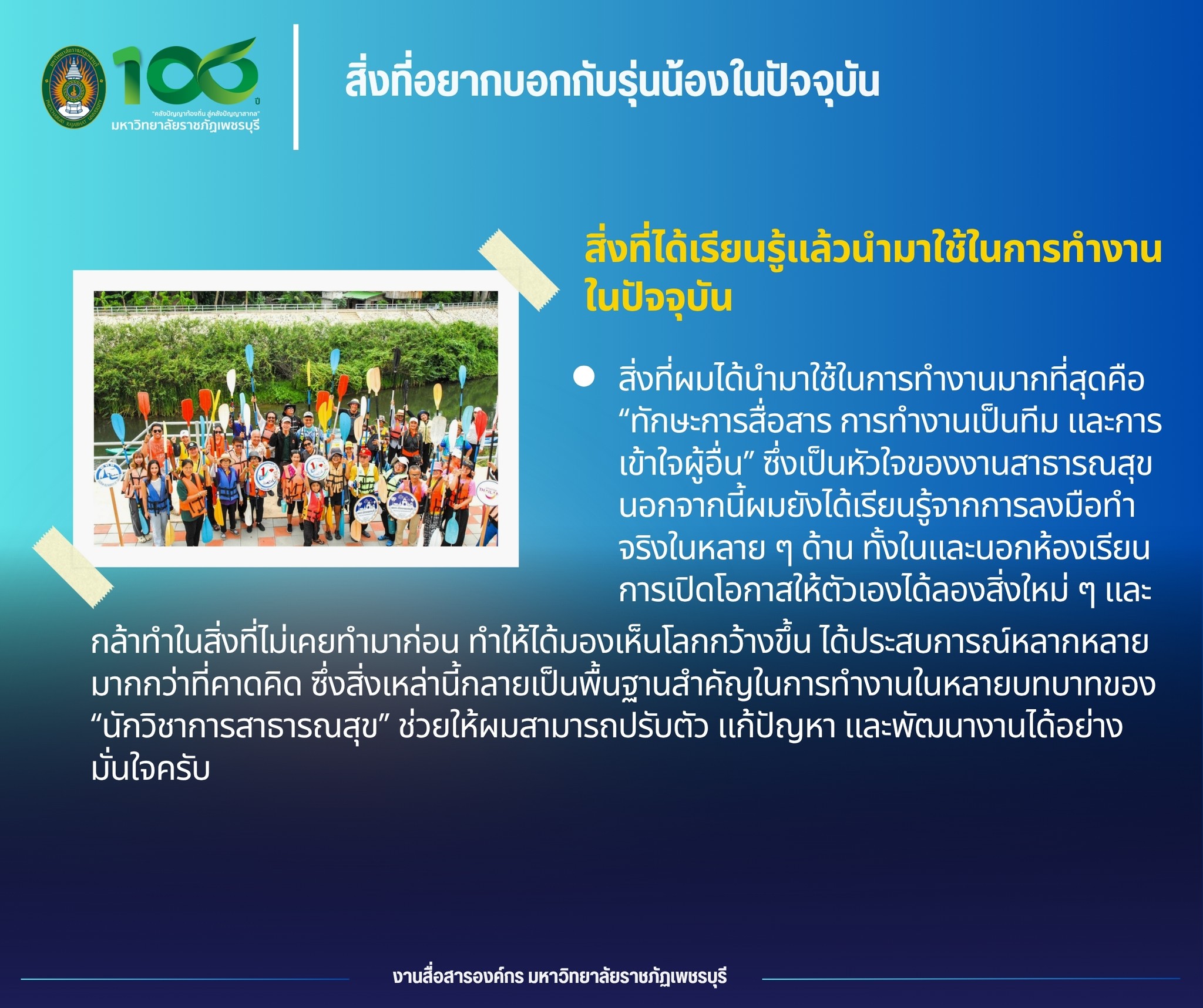 อีกหนึ่งความสำเร็จของมหาวิทยาลัยราชภัฏเพชรบุรี 5 พฤศจิกายน 20255 พฤศจิกายน 2025นายพศวีร์ คอนจอหอข่าวประชาสัมพันธ์, ข่าวสำหรับบุคลากร, ข่าวสื่อสารองค์กร จำนวนผู้ชม : 3 อีกหนึ่งความสำเร็จของมหาวิทยาลัยราชภัฏเพชรบุรี โดย นางสาวเขมรินทร์ ทองด้วง ศิษย์เก่าคณะพยาบาลศาสตร์และวิทยาการสุขภาพ สาขาสาธารณสุขศาสตร์ สำเร็จการศึกษาปีการศึกษา 2564 ปัจจุบันนักวิชาการสาธารณสุขปฏิบัติการ โรงพยาบาลราชบุรี จังหวัดราชบุรีประสบความสำเร็จได้ที่ มหาวิทยาลัยราชภัฏเพชรบุรีเพราะเรา “PBRU Earn While Learn”เรียนจริง ปฏิบัติจริง มีรายได้ระหว่างเรียนPBRU เปิดรับสมัครแล้วจ้าาาา สนใจสาขาไหน แอดไลน์มาคุยได้เลย สมัครออนไลน์ ง่ายนิดเดียว คลิกเลย https://reg.pbru.ac.th สอบถามเพิ่มเติมหน่วยรับสมัคร สำนักส่งเสริมวิชาการและงานทะเบียนโทร 032 708 640 Facebook iconFacebookTwitter iconTwitterLINE iconLine