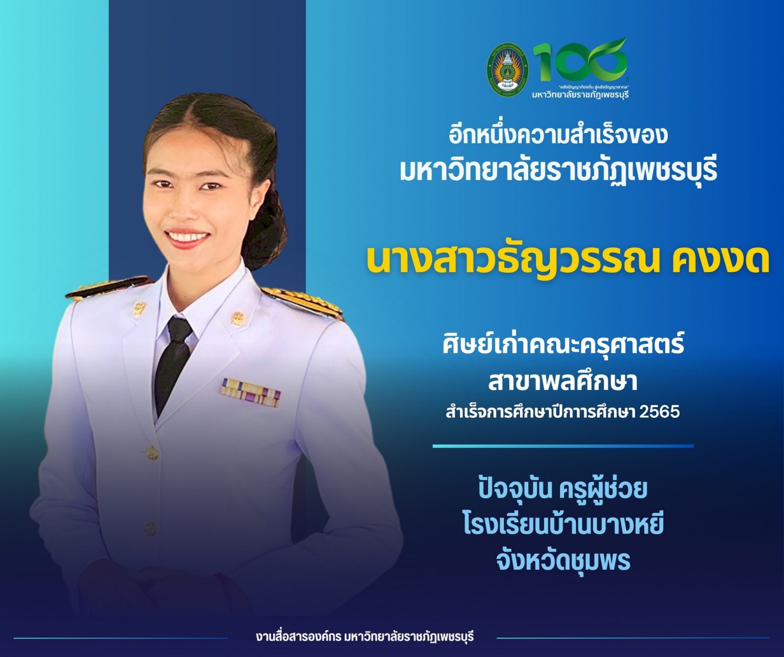 อีกหนึ่งความสำเร็จของมหาวิทยาลัยราชภัฏเพชรบุรี 5 พฤศจิกายน 20255 พฤศจิกายน 2025นายพศวีร์ คอนจอหอข่าวประชาสัมพันธ์, ข่าวสำหรับบุคลากร, ข่าวสื่อสารองค์กร จำนวนผู้ชม : 3 อีกหนึ่งความสำเร็จของมหาวิทยาลัยราชภัฏเพชรบุรี โดย นางสาวธัญวรรณ คงงด ศิษย์เก่าคณะครุศาสตร์ สาขาพลศึกษา สำเร็จการศึกษาปีการศึกษา 2565 ปัจจุบัน ครูผู้ช่วยโรงเรียนบ้านบางหยี จังหวัดชุมพรประสบความสำเร็จได้ที่ มหาวิทยาลัยราชภัฏเพชรบุรีเพราะเรา “PBRU Earn While Learn”เรียนจริง ปฏิบัติจริง มีรายได้ระหว่างเรียนPBRU เปิดรับสมัครแล้วจ้าาาา สนใจสาขาไหน แอดไลน์มาคุยได้เลย สมัครออนไลน์ ง่ายนิดเดียว คลิกเลย https://reg.pbru.ac.th สอบถามเพิ่มเติมหน่วยรับสมัคร สำนักส่งเสริมวิชาการและงานทะเบียนโทร 032 708 640 Facebook iconFacebookTwitter iconTwitterLINE iconLine