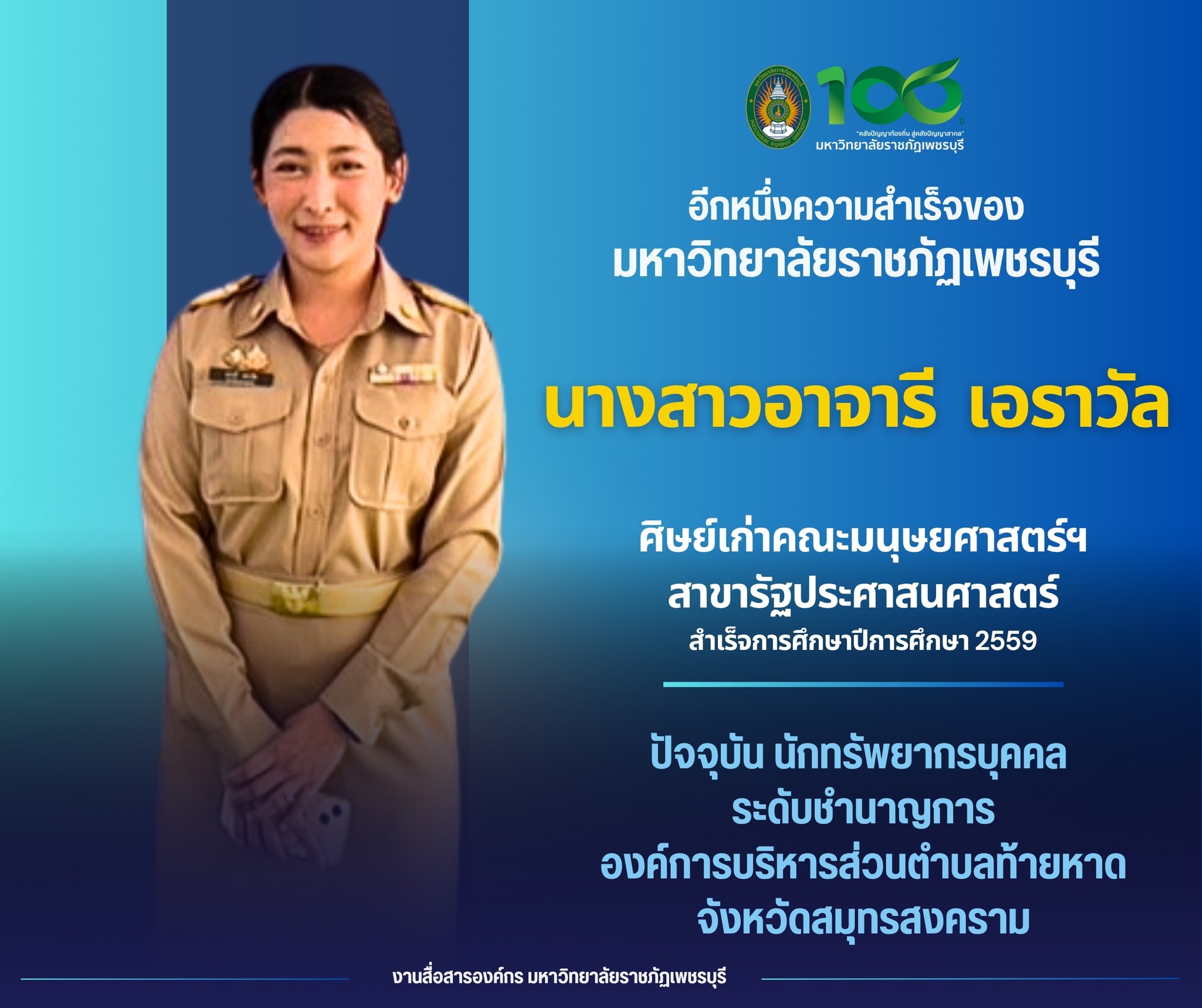 อีกหนึ่งความสำเร็จของมหาวิทยาลัยราชภัฏเพชรบุรี 8 พฤศจิกายน 20258 พฤศจิกายน 2025นายพศวีร์ คอนจอหอข่าวประชาสัมพันธ์, ข่าวสำหรับบุคลากร, ข่าวสื่อสารองค์กร จำนวนผู้ชม : 2 อีกหนึ่งความสำเร็จของมหาวิทยาลัยราชภัฏเพชรบุรี โดย นางสาวอาจารี เอราวัล ศิษย์เก่าคณะมนุษยศาสตรและสังคมศาสตร์ สาขารัฐประศาสนศาสตร์ สำเร็จการศึกษาปีการศึกษา 2559 ปัจจุบัน นักทรัพยากรบุคคล ระดับชำนาญการ องค์การบริหารส่วนตำบลท้ายหาด อำเภอเมือง จังหวัดสมุทรสงครามประสบความสำเร็จได้ที่ มหาวิทยาลัยราชภัฏเพชรบุรีเพราะเรา “PBRU Earn While Learn”เรียนจริง ปฏิบัติจริง มีรายได้ระหว่างเรียนPBRU เปิดรับสมัครแล้วจ้าาาา สนใจสาขาไหน แอดไลน์มาคุยได้เลย สมัครออนไลน์ ง่ายนิดเดียว คลิกเลย https://reg.pbru.ac.th สอบถามเพิ่มเติมหน่วยรับสมัคร สำนักส่งเสริมวิชาการและงานทะเบียนโทร 032 708 640 Facebook iconFacebookTwitter iconTwitterLINE iconLine