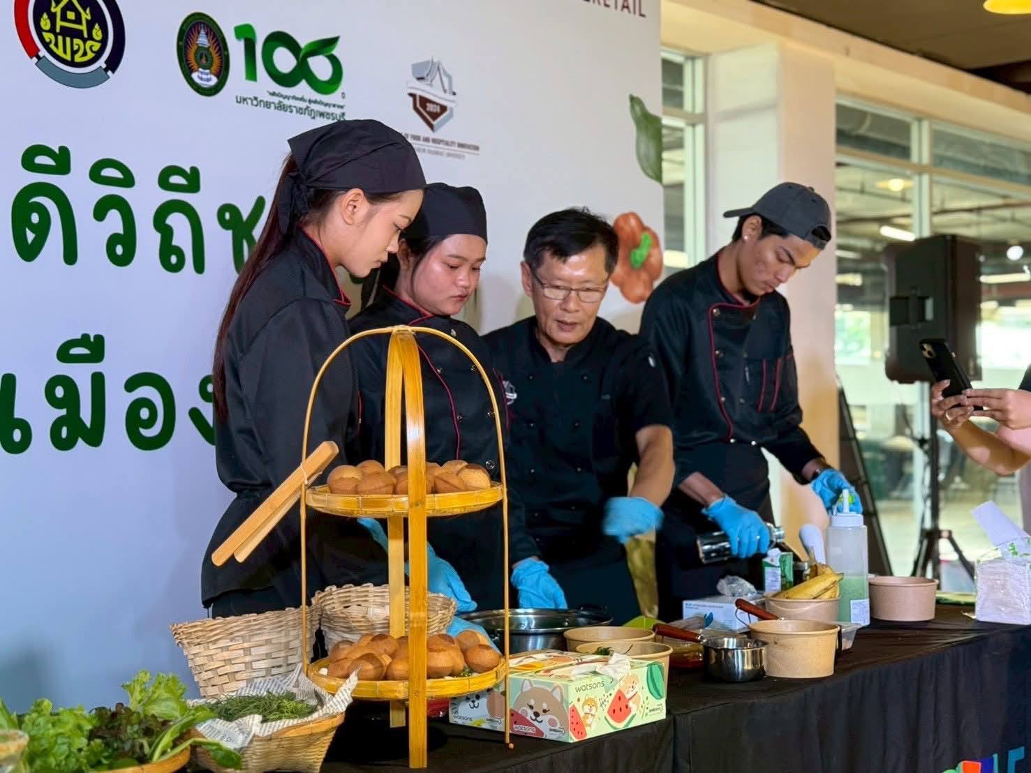 วิทยาลัยนวัตกรรมอาหารและอุตสาหกรรมบริการ ส่งอาจารย์และนักศึกษาเข้าร่วมกิจกรรม “ของดีวิถีชุมชน คนเมืองเพชร” 11 พฤศจิกายน 202511 พฤศจิกายน 2025นายพศวีร์ คอนจอหอข่าวประชาสัมพันธ์, ข่าวสื่อสารองค์กร จำนวนผู้ชม : 5 วิทยาลัยนวัตกรรมอาหารและอุตสาหกรรมบริการ ส่งอาจารย์และนักศึกษาเข้าร่วมกิจกรรม“ของดีวิถีชุมชน คนเมืองเพชร” วันที่ 9 พฤศจิกายน 2568 อาจสรย์ ดร.ทวิพัฒน์ วิจิตรปัญญารักษ์ คณบดีวิทยาลัยนวัตกรรมอาหารและอุตสาหกรรมบริการ มอบหมายให้อาจารย์เชฟเชวง จัตตุพรพงษ์ อาจารย์ประจำสาขาวิชาอาหารสร้างสรรค์และการจัดการบริการอาหาร และนักศึกษา เข้าร่วมกิจกรรม “สาธิตการทำอาหารจากวัตถุดิบเมืองเพชรบุรี” ในกิจกรรม “ของดีวิถีชุมชน คนเมืองเพชร” เพื่อสนับสนุนเกษตรและชุมชนและเชิดชูอาหารท้องถิ่นเมืองเพชรบุรี ณ ชั้น B ศูนย์การค้าโรบินสันไลฟ์สไตล์เพชรบุรีโอกาสนี้นักศึกษาวิทยาลัยนวัตกรรมอาหารและอุตสาหกรรมบริการ ยังได้เข้าร่วมกิจกรรมเพื่อยกระดับและพัฒนาคุณภาพนักศึกษา ประกอบด้วย นางสาวจันทพร แป้นทอง นายวีรภาพ ศรีฟ้า นางสาวพัชรี แป้นทอง นักศึกษาชั้นปีที่ 1 สาขาวิชาอาหารสร้างสรรค์และการจัดการบริการอาหาร ดำเนินรายการโดยนางสาวชุติมนต์กานต์ วัดวิไล ให้บริการอาหารโดยนางสาว NEARYROTH VIREAK นางสาวศศิธร วงศ์สีดา และนางสาวมณิสรา โกสมศรี นักศึกษาชั้นปีที่ 2 สาขาวิชาการท่องเที่ยว การบริการ อีเวนท์และการจัดการภัตตาคาร นานาชาติ ควบคุมดูแลนักศึกษาโดยอาจารย์ศรัญญู จันทร์วงศ์ อาจารย์ประจำสาขาวิชาการท่องเที่ยว การบริการ อีเวนท์และการจัดการภัตตาคาร นานาชาติ Facebook iconFacebookTwitter iconTwitterLINE iconLine