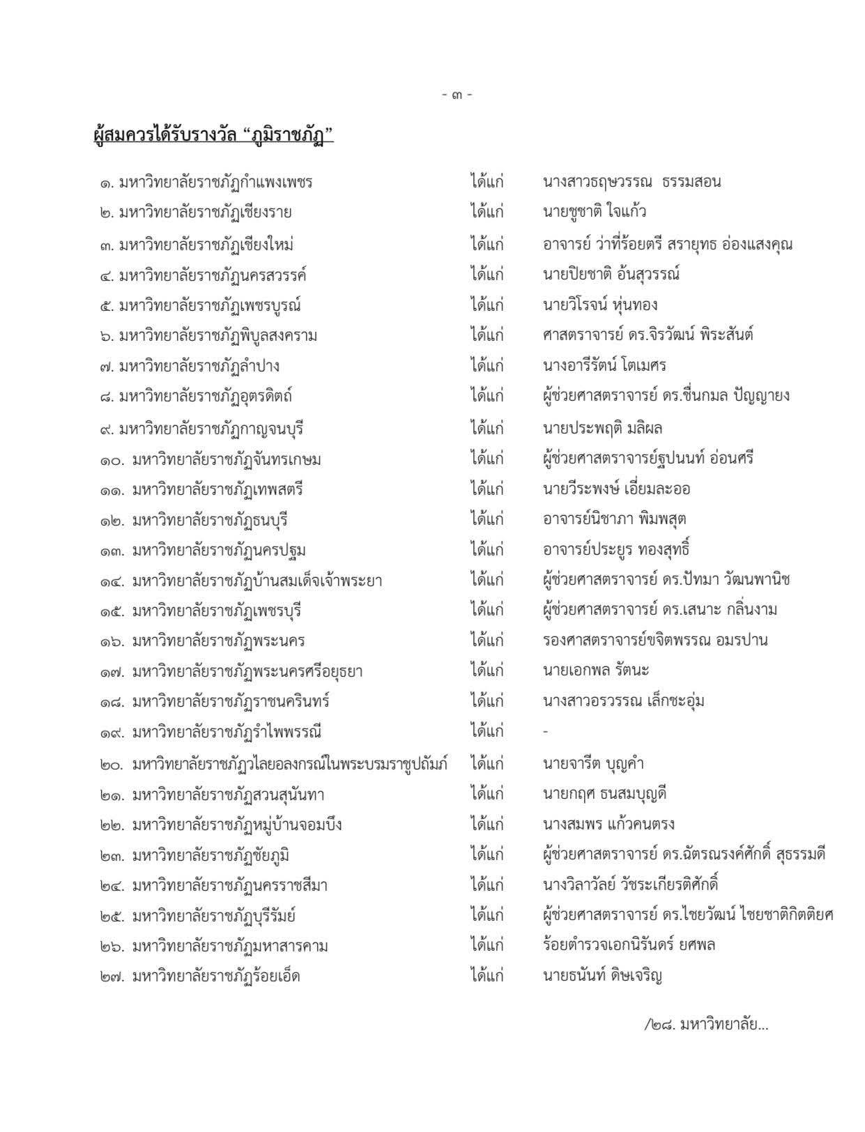 ประกาศรายชื่อผู้สมควรได้รับรางวัล“ราชภัฏคุณากร” และ “ภูมิราชภัฏ” ประจำปีพุทธศักราช 2569