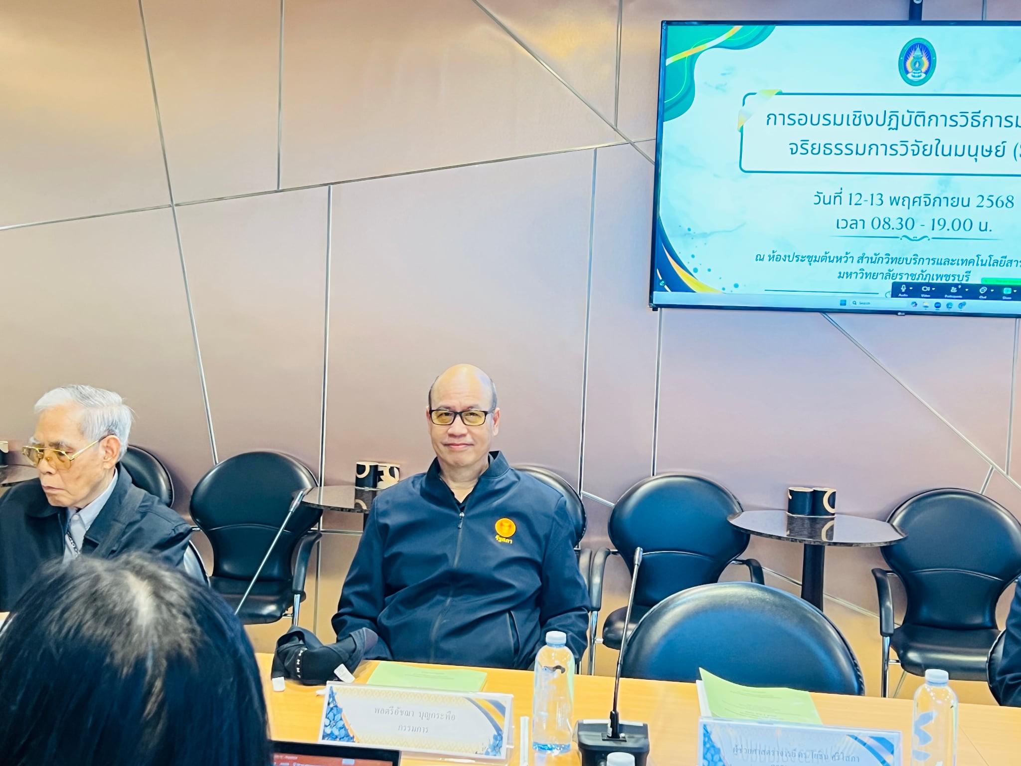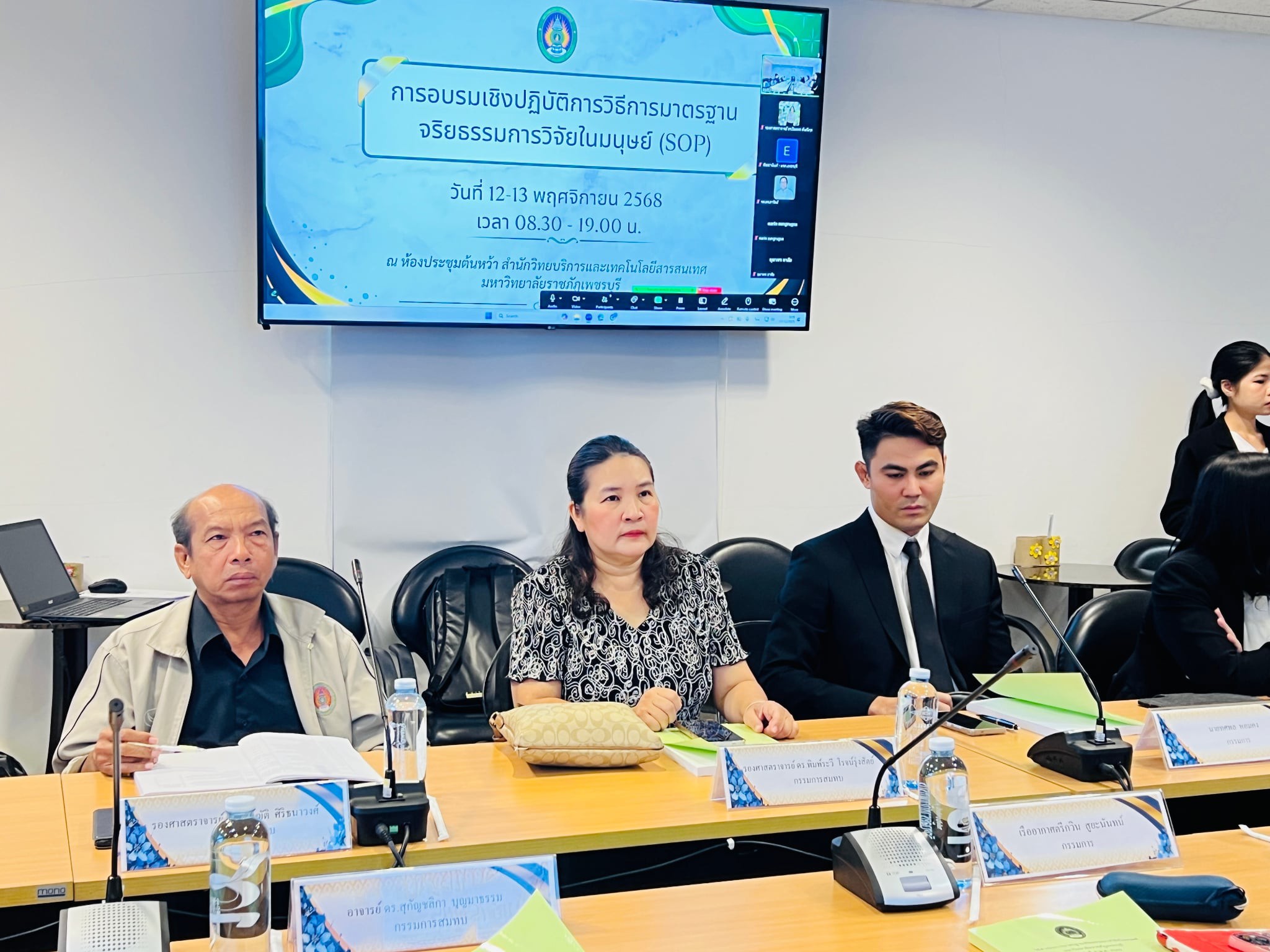 วันที่ 12–13 พฤศจิกายน 2568 ณ ห้องประชุมต้นหว้า สำนักวิทยบริการและเทคโนโลยีสารสนเทศ มหาวิทยาลัยราชภัฏเพชรบุรี สถาบันวิจัยและส่งเสริมศิลปวัฒนธรรมจัดอบรม “วิธีดำเนินการมาตรฐานจริยธรรมการวิจัยในมนุษย์ ” โดยได้รับเกียรติจาก ผู้ช่วยศาสตราจารย์วิเชียร เข็มเงิน รองอธิการบดีฝ่ายบริหาร เป็นประธานในพิธีเปิดการอบรม