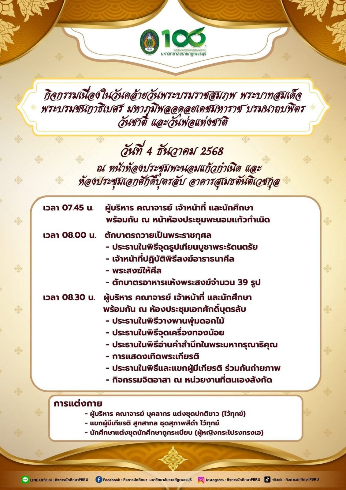 เนื่องในวันคล้ายวันพระบรมราชสมภพ พระบาทสมเด็จพระบรมชนกาธิเบศร มหาภูมิพลอดุลยเดชมหาราช บรมนาถบพิตร วันชาติ และวันพ่อแห่งชาติ