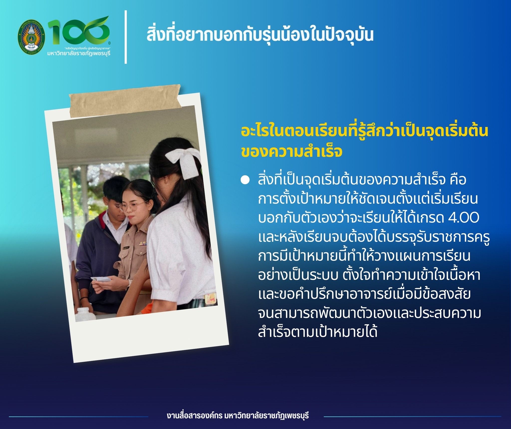 ประสบความสำเร็จได้ที่ มหาวิทยาลัยราชภัฏเพชรบุรี