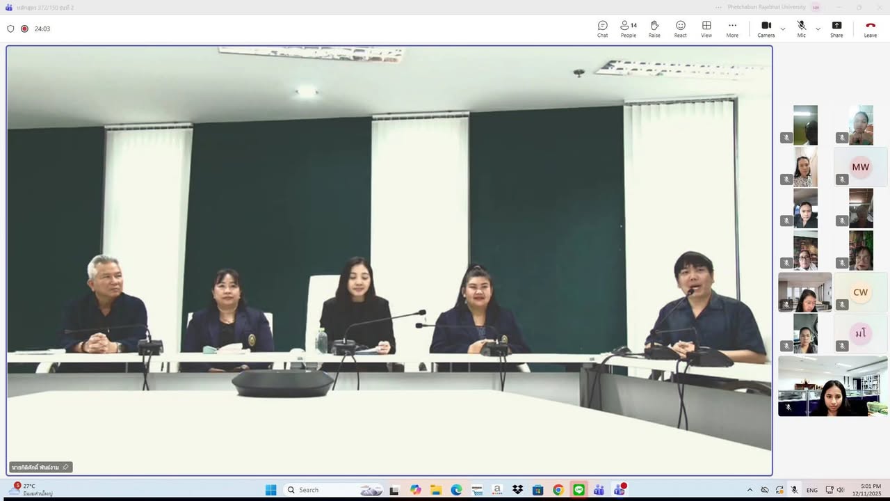 วันที่ 11 ธันวาคม 2568ณ ห้องประชุมกาสะลอง ชั้น 2 คณะพยาบาลศาสตร์และวิทยาการสุขภาพ ผู้ช่วยศาสตราจารย์ เรือเอกหญิง ดร.สุพัตรา นุตรักษ์ คณบดีคณะพยาบาลศาสตร์และวิทยาการสุขภาพ มอบหมายให้ อาจารย์รัชดาวัลย์ จิตรพรกุลวศิน รองคณบดีฝ่ายกิจการนักศึกษา ประกันคุณภาพการศึกษา และบริการวิชาการ พร้อมด้วยคณาจารย์ ดำเนินการกล่าวต้อนรับผู้เข้าร่วมอบรมหลักสูตรผู้ช่วยแพทย์แผนไทย 372 ชั่วโมง รุ่นที่ 2 และหลักสูตรการนวดไทยเพื่อสุขภาพ 150 ชั่วโมง ในรูปแบบออนไลน์