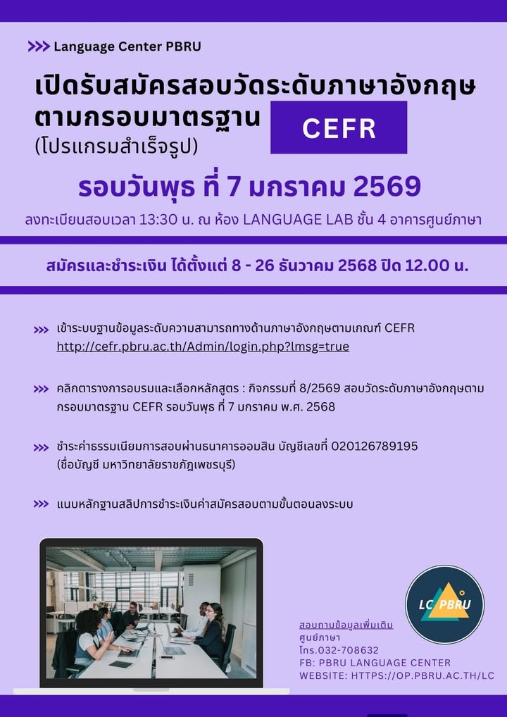 📢📢ศูนย์ภาษารับสมัครผู้สนใจสอบวัดระดับภาษาอังกฤษตามกรอบมาตรฐาน CEFR รอบวันพุธ ที่ 7 มกราคม 2569