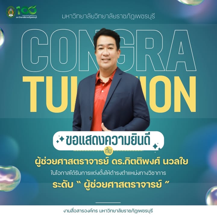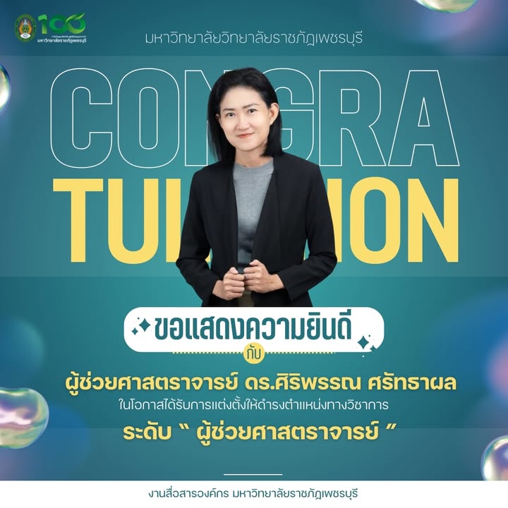 มหาวิทยาลัยราชภัฏเพชรบุรี ขอแสดงความยินดีกับบุคลากรในโอกาสได้รับการแต่งตั้งให้ดำรงตำแหน่งทางวิชาการ