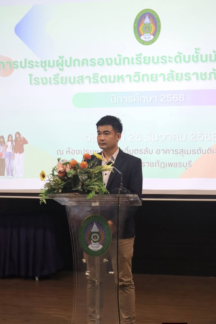 วันที่ 26 ธันวาคม 2568 ณ ห้องประชุมเอกศักดิ์บุตรลับ อาคารสุเมธตันติเวชกุล มหาวิทยาลัยราชภัฏเพชรบุรี รองศาสตราจารย์ ดร.พิเชฐ นิลดวงดี รองอธิการบดีมหาวิทยาลัยราชภัฏเพชรบุรี ฝ่ายวิชาการและงานแผนงาน เป็นประธานเปิดการประชุมผู้ปกครองนักเรียนโรงเรียนสาธิตมหาวิทยาลัยราชภัฏเพชรบุรีระดับชั้นมัธยมศึกษาปีที่ 3 ภาคเรียนที่ 2 ปีการศึกษา 2568