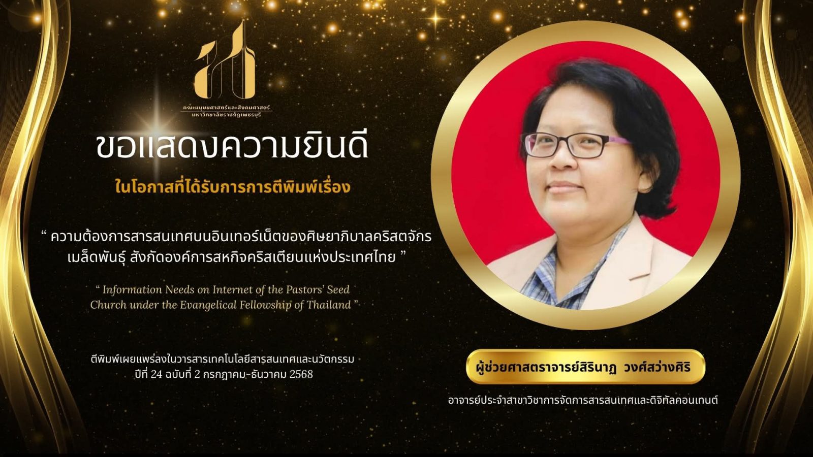 ในโอกาสที่บทความวิจัยได้รับการตีพิมพ์ในวารสารเทคโนโลยีสารสนเทศและนวัตกรรม ปีที่ 24 ฉบับที่ 2 กรกฎาคม-ธันวาคม 2568🌟⭐