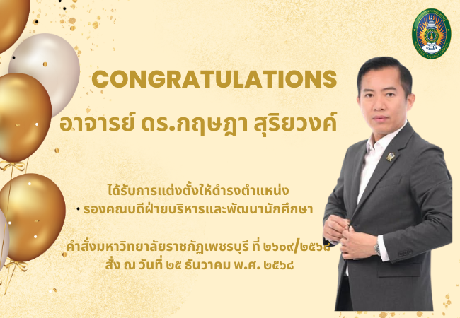 อาจารย์ ดร.กฤษฎา สุริยวงค์ รองคณบดีฝ่ายบริหารและพัฒนานักศึกษา