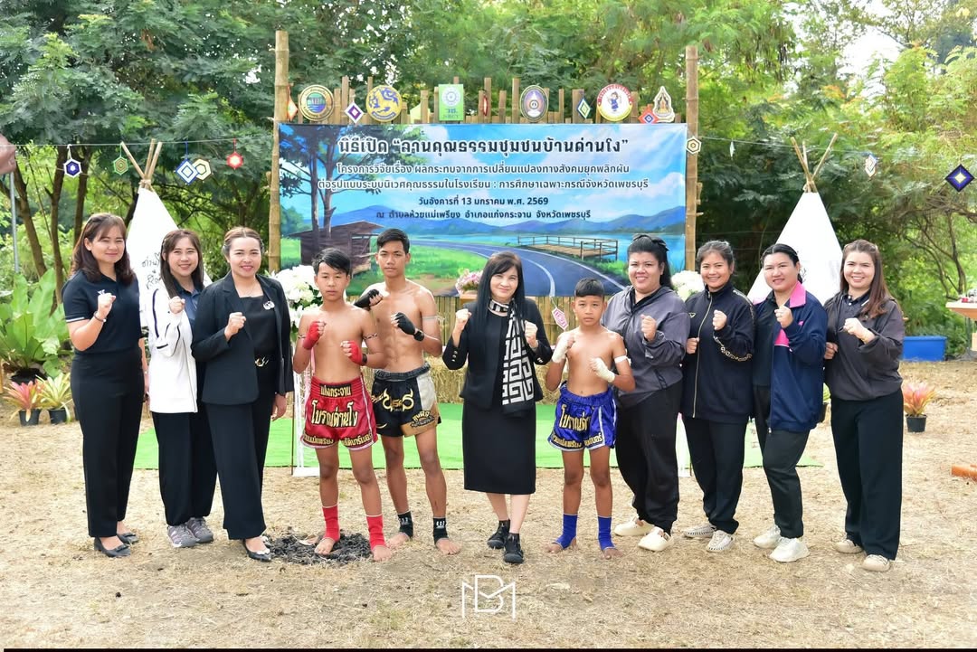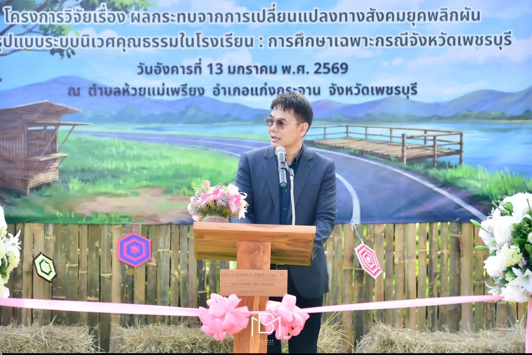 อาจารย์ ดร.นวรัตน์ ประทุมตา อาจารย์คณะครุศาสตร์ หัวหน้าทีมวิจัยโครงการวิจัยเรื่อง “ผลกระทบจากการเปลี่ยนแปลงทางสังคมยุคพลิกผันต่อรูปแบบระบบนิเวศคุณธรรมในโรงเรียน: การศึกษาเฉพาะกรณีจังหวัดเพชรบุรี” ซึ่งได้รับการสนับสนุนทุนวิจัยจากกองทุนส่งเสริมวิทยาศาสตร์ วิจัยและนวัตกรรม โดยสำนักงานวิจัยแห่งชาติ (วช.) โดยมีนายชินโชติ บัวทอง ปลัดอำเภอประจำตำบลห้วยแม่เพรียง เป็นประธานในพิธี และได้รับเกียรติจาก อ.ดร. อมร ประดับทอง ที่ปรึกษาอธิการบดี มหาวิทยาลัยราชภัฏเพชรบุรี นางกัญญพัชร เพชรงาม วัฒนธรรมจังหวัดเพชรบุรี หัวหน้าส่วนราชการและผู้บริหารมหาวิทยาลัยราชภัฏเพชรบุรี ร่วมพิธีเปิด เมื่อวันที่ 13 มกราคม 2569 ณ พื้นที่ตำบลห้วยแม่เพรียง อำเภอแก่งกระจาน จังหวัดเพชรบุรี
