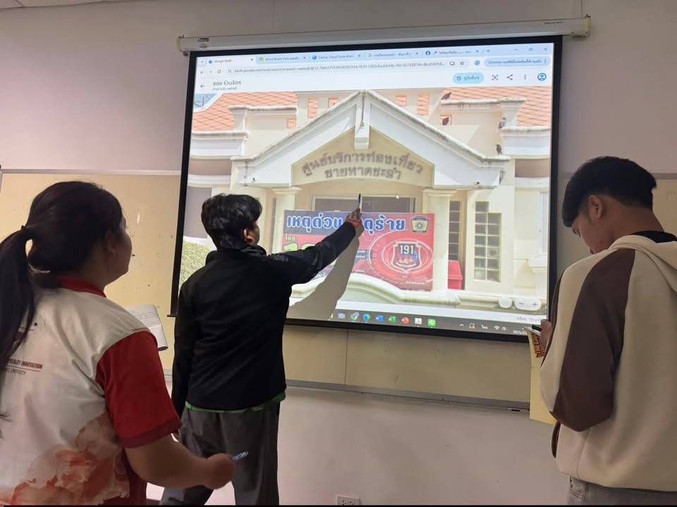 นักศึกษาชั้นปีที่ 3 รายวิชาการวางแผนการพัฒนาการท่องเที่ยวอย่างยั่งยืน สาขาวิชาการท่องเที่ยว การบริการ อีเวนท์ และการจัดการภัตตาคารนานาชาติ ภายใต้การเรียนการสอนโดยอาจารย์กมล เกียรติพงษ์ เรียนรู้การประเมินแหล่งท่องเที่ยวอย่างยั่งยืน (Destination Check-up) ผ่านการปรับใช้เครื่องมือดิจิทัลอย่าง Google Earth เพื่อสำรวจทัศนียภาพ บริบทพื้นที่ และองค์ประกอบแหล่งท่องเที่ยว พร้อมทั้งวิเคราะห์ตามเกณฑ์ Sustainability Assessment ของ Global Sustainable Tourism Criteria (GSTC)