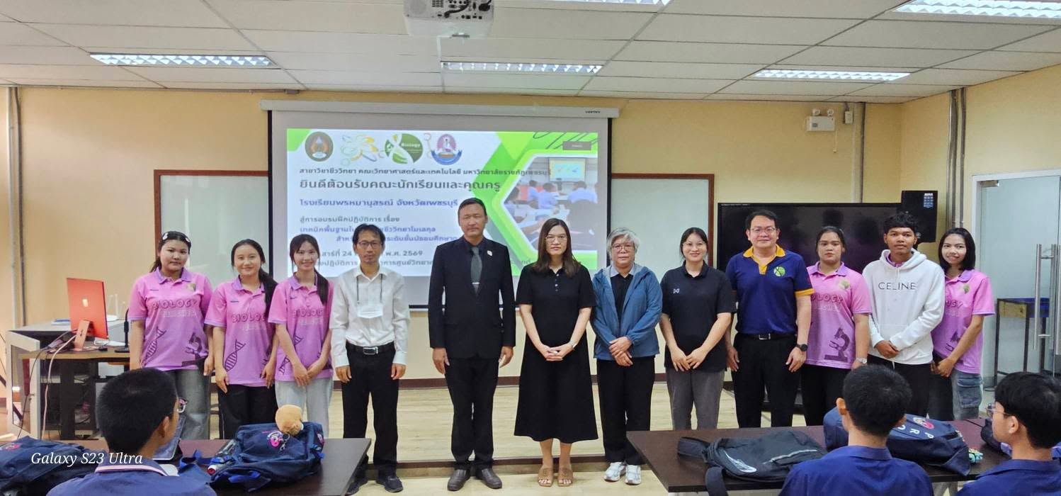 วันที่ 24 มกราคม 2569 นักเรียนชั้นมัธยมศึกษาปีที่ 4 โรงเรียนพรหมานุสรณ์จังหวัดเพชรบุรี เข้าค่ายปฏิบัติการเทคนิคพื้นฐานวิจัยชีววิทยาโมเลกุล “เทคนิคพื้นฐานในงานวิจัยชีววิทยาโมเลกุล” ณ ห้อง ศว.403 อาคารศูนย์วิทยาศาสตร์และวิทยาศาสตร์ประยุกต์ มหาวิทยาลัยราชภัฏเพชรบุรี โดยรับเกียรติจากผู้ช่วยศาสตราจารย์ณรงค์ ไกรเนตร์ คณบดีคณะวิทยาศาสตร์และเทคโนโลยี กล่าวต้อนรับนักเรียนที่เข้าร่วมกิจกรรม