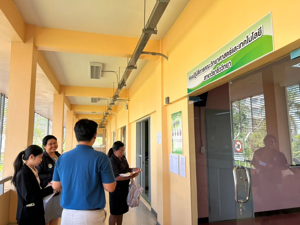 โอกาสนี้ได้ตรวจเยี่ยมห้องปฏิบัติการไมโครเทคนิค และห้องปฏิบัติการคณะวิทยาศาสตร์และเทคโนโลยี สาขาชีววิทยา ครั้งที่ 2 พร้อมทั้งให้คำแนะนำแก่ลูกข่ายเพื่อปรับปรุงแก้ไขและเตรียมพร้อมห้องปฏิบัติการปลอดภัยตามมาตรฐาน ESPReL