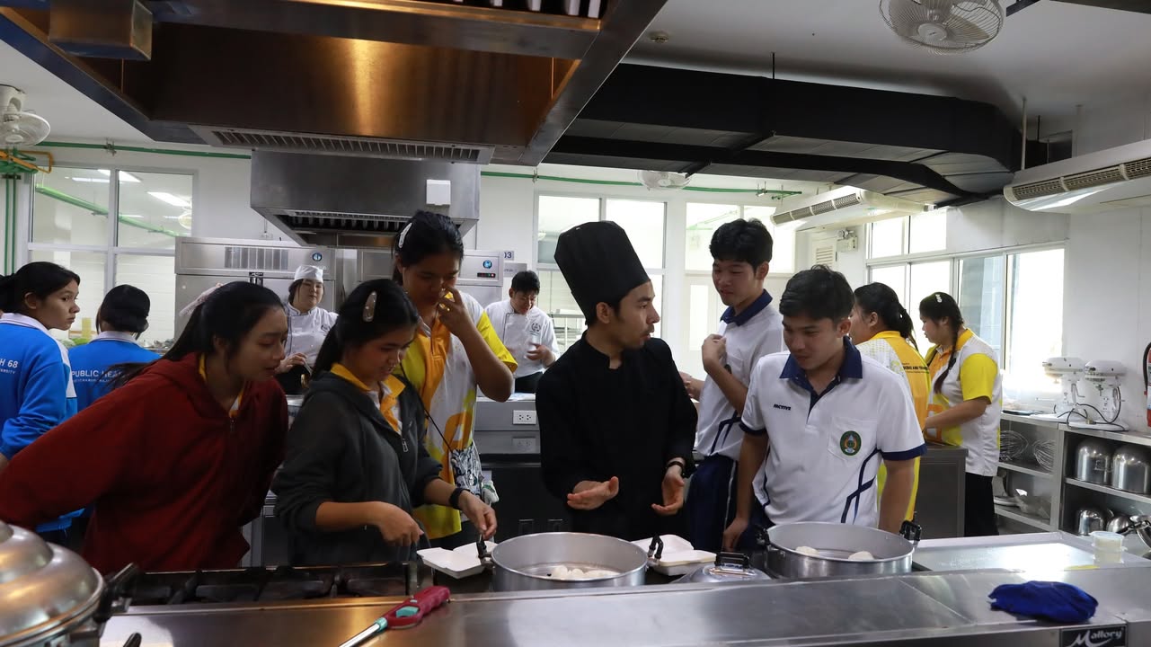 ในส่วนหลักสูตรการทำหมั่นโถว ได้รับเกียรติจากอาจารย์นราธร สัตย์ซื่อ ประธานสาขาวิชาเทคโนโลยีและศิลปะการประกอบอาหาร คณะวิทยาศาสตร์และเทคโนโลยี เป็นผู้สอน พร้อมด้วยนักศึกษาสาขาวิชาเทคโนโลยีและศิลปะการประกอบอาหารร่วมเป็นพี่เลี้ยงในการประกอบอาหารตลอดการอบรม โดยนักศึกษาจะได้รับสูตรการทำหมั่นโถว และเรียนรู้กรรมวิธีการทำแป้งเชื้อและแป้งหมั่นโถว การผสมส่วนประกอบ ซึ่งรูปแบบหมั่นโถวที่สอนนั้นมีทั้งแบบนึ่งและแบบทอด นอกจากนี้นักศึกษาจะได้เรียนรู้การทำซอสรสชาติต่างๆ อาทิ ซอสใบเตย ซอสนมสด ซอสชาไทยและซอสช็อกโกแล็ต โดยนักศึกษาจะได้ลงมือปฏิบัติจริงในทุกขั้นตอน