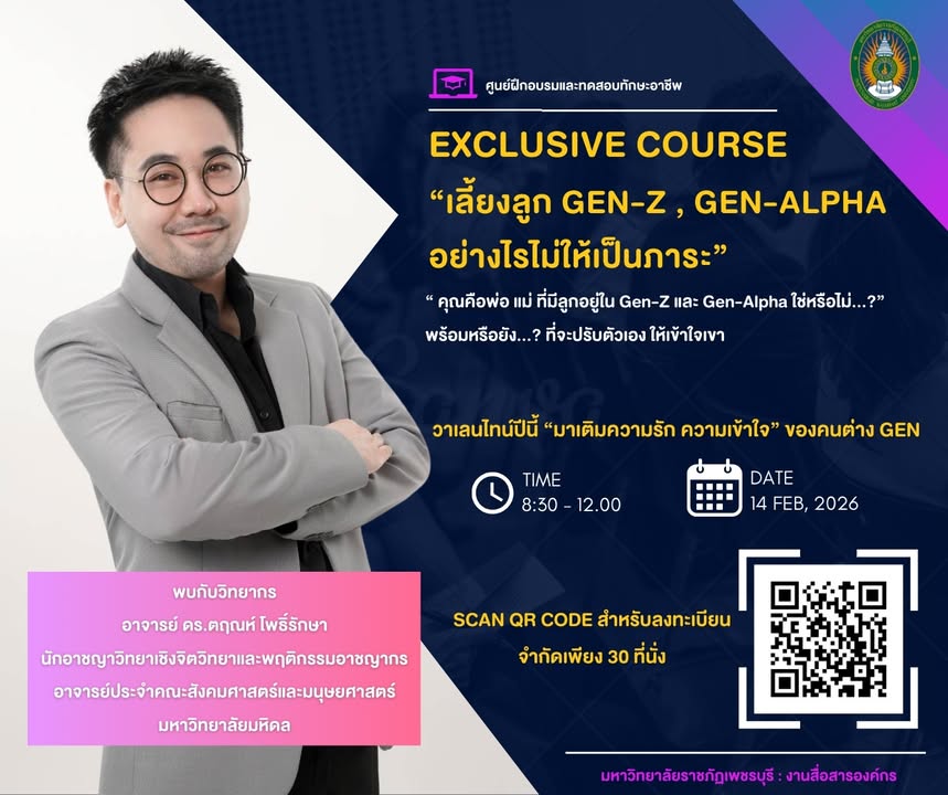 จัดโดย ศูนย์ฝึกอบรมและทดสอบทักษะอาชีพ สำนักงานอธิการบดี มหาวิทยาลัยราชภัฏเพชรบุรี