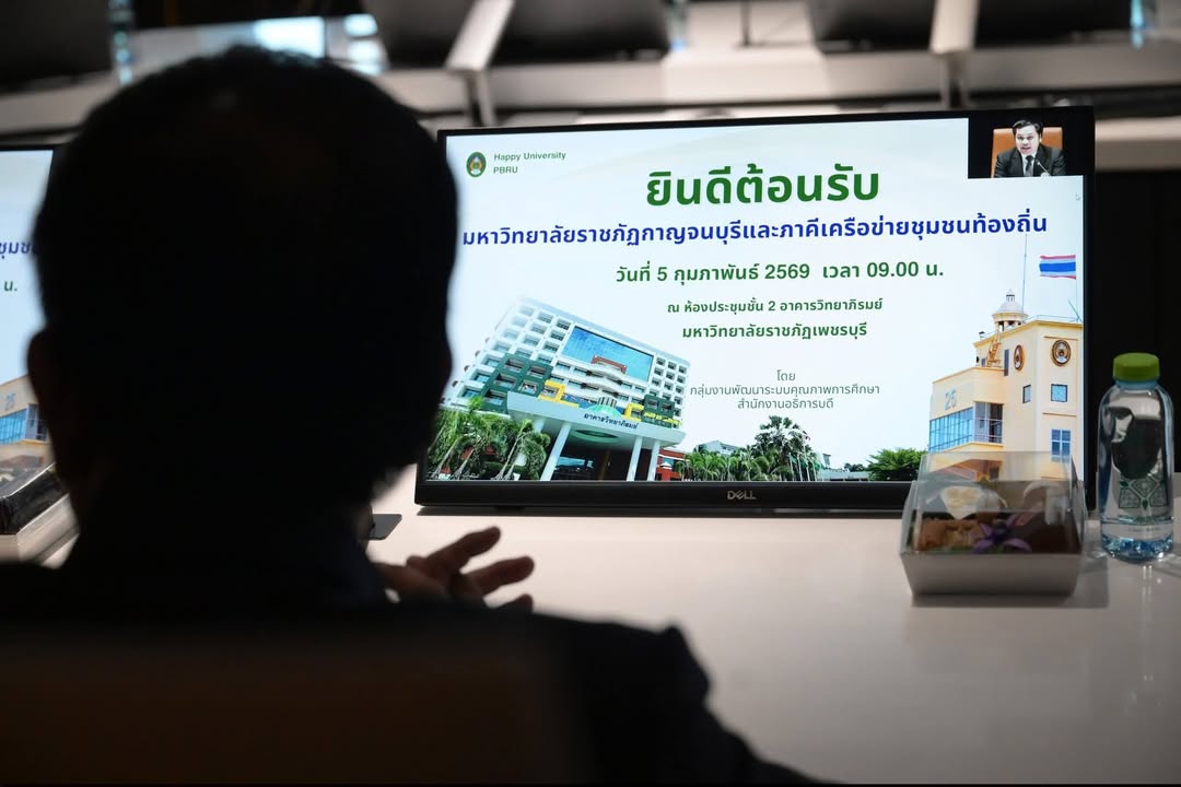 วันที่ 5 กุมภาพันธ์ 2569 ณ ห้องประชุมชั้น 2 อาคารวิทยาภิรมย์ มหาวิทยาลัยราขภัฏเพชรบุรี อาจารย์ ดร.เมธาวิน สาระยาน รองอธิการบดีมหาวิทยาลัยราชภัฏเพชรบุรี พร้อมด้วยบุคลากรงานพัฒนาระบบคุณภาพการศึกษา ให้การต้อนรับผู้ช่วยศาสตราจารย์จรายุทธ ประทีปวรกาญจน์ รองอธิการบดีมหาวิทยาลัยราชภัฏกาญจนบุรี บุคลากรและเครือข่ายชุมชนท้องถิ่น ในโอกาสเดินทางมาศึกษาดูงานภายใต้โครงการ Happy University: องค์กรท้องถิ่นและความสุขสู่องค์กรสุขภาวะ