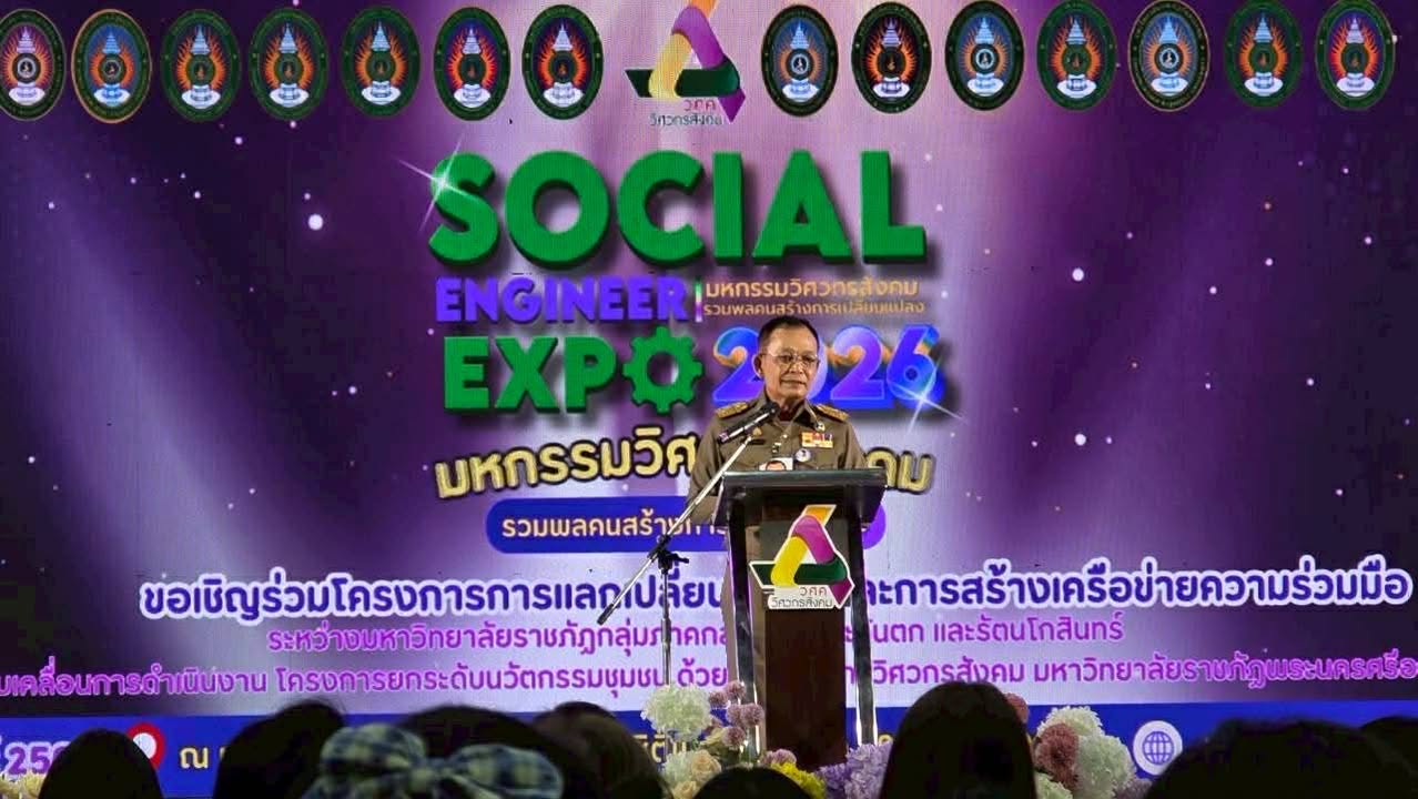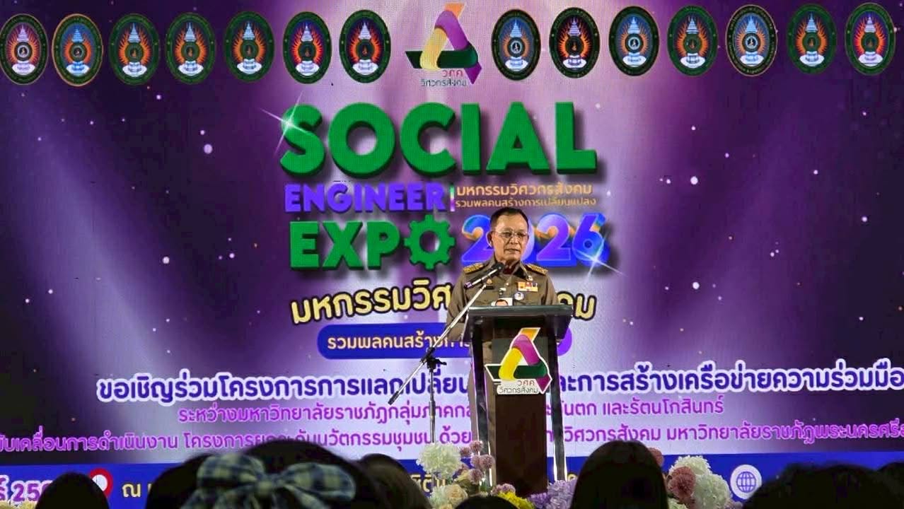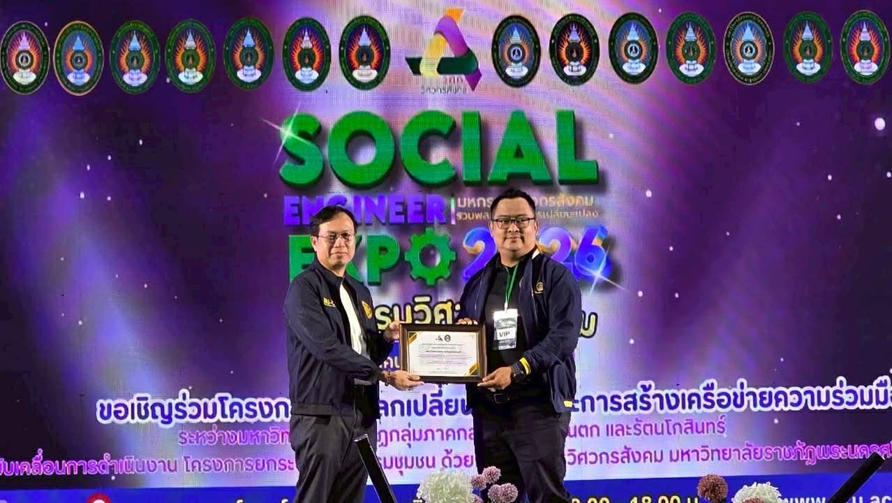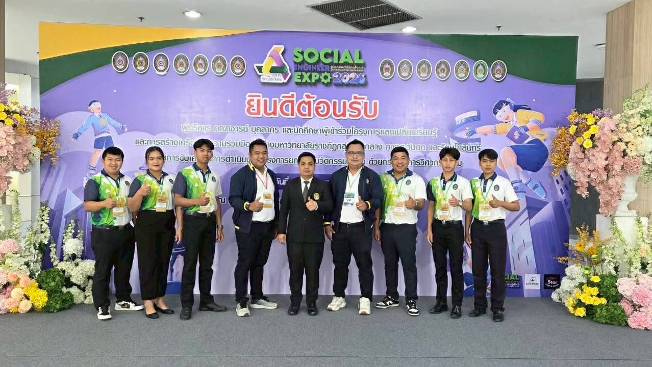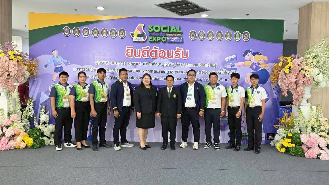 อาจารย์ ดร.เมธาวิน สาระยาน รองอธิการบดีด้านพัฒนานักศึกษาและกิจการพิเศษ พร้อมด้วยนายกิตติภพ รักษาราษฎร์ ผู้อำนวยการกองพัฒนานักศึกษา นำบุคลากรและนักศึกษาวิศวกรสังคม เข้าร่วมกิจกรรมการแลกเปลี่ยนเรียนรู้และการสร้างเครือข่ายความร่วมมือระหว่างมหาวิทยาลัยราชภัฏ กลุ่มภาคกลาง ภาคตะวันตก และรัตนโกสินทร์ ในการขับเคลื่อนการดำเนินงาน โครงการยกระดับนวัตกรรมชุมชน ด้วยกระบวนการวิศวกรสังคม ที่มหาวิทยาลัยราชภัฏพระนครศรีอยุธยา กำหนดจัดขึ้นระหว่างวันที่ 8 – 10 กุมภาพันธ์ 2569 ณ ศูนย์การค้าอยุธยา ซิตี้พาร์ค จังหวัดพระนครศรีอยุธยา