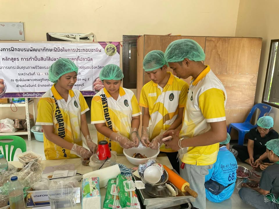 ผู้ช่วยศาสตราจารย์ณรงค์ ไกรเนตร์ คณบดีคณะวิทยาศาสตร์และเทคโนโลยี พร้อมด้วยผู้ช่วยศาสตราจารย์ ดร.ประดิพันธ์ ทองแถม ณ อยุธยา รองคณบดีฝ่ายกิจการนักศึกษา บุคลากรและนักศึกษาสโมสรนักศึกษาคณะวิทยาศาสตร์และเทคโนโลยี ลงพื้นที่บ้านหนองมะกอก ตำบลวังจันทร์ อำเภอแก่งกระจาน จังหวัดเพชรบุรี ครั้งที่ 2 เมื่อวันก่อนนี้ เพื่อร่วมจัดทำแพคเกจจิ้งเพื่อเพิ่มมูลค่าสินค้าปั้นสิบปลานิลและคุกกี้ปลานิล