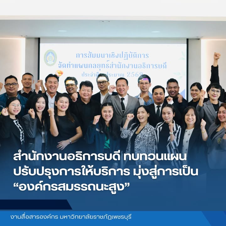 สำนักงานอธิการบดี จัดสัมมนาเชิงปฏิบัติการจัดทำแผนกลยุทธ์ ประจำปีงบประมาณ 2569 20 กุมภาพันธ์ 202620 กุมภาพันธ์ 2026no-Systemข่าวสื่อสารองค์กร, ข่าวเด่น จำนวนผู้ชม : 11 สำนักงานอธิการบดี จัดสัมมนาเชิงปฏิบัติการจัดทำแผนกลยุทธ์ ประจำปีงบประมาณ 2569ระหว่างวันที่ 20 – 21 กุมภาพันธ์ 2569 รองศาสตราจารย์ ดร.พัชรศักดิ์ อาลัย อธิการบดีมหาวิทยาลัยราชภัฏเพชรบุรี เป็นประธานกล่าวเปิดโครงการสัมมนาเชิงปฏิบัติการจัดทำแผนกลยุทธ์สำนักงานอธิการบดี ประจำปีงบประมาณ 2569 พร้อมมอบนโยบายและแนวทางการขับเคลื่อนมหาวิทยาลัยสู่การพัฒนาอย่างมีประสิทธิภาพและยั่งยืน โดยมีผู้บริหารและบุคลากรสำนักงานอธิการบดีเข้าร่วม ณ โรงแรมอัมพวาน่านอน จังหวัดสมุทรสงครามอธิการบดีได้เน้นย้ำการดำเนินงานตามกรอบคุณภาพการศึกษาเพื่อการดำเนินการที่เป็นเลิศ (EdPEx) และการจัดทำข้อมูลโครงร่างองค์กร (Organizational Profile : OP) เพื่อยกระดับมาตรฐานการบริหารจัดการให้สอดคล้องกับยุทธศาสตร์มหาวิทยาลัยนางนับวรรณ เอมนุกูลกิจ ผู้อำนวยการสำนักงานอธิการบดี ได้กล่าวถึงการสัมมนาในครั้งนี้ว่า “เป็นการบรรยายและแลกเปลี่ยนเรียนรู้ในประเด็นสำคัญ เช่น การเตรียมความพร้อมรับการประเมินคุณภาพการศึกษา การขับเคลื่อนมหาวิทยาลัยสู่มหาวิทยาลัยดิจิทัล การใช้ Genai.pbru.ac.th สำหรับการปฏิบัติงาน และแนวทางพัฒนางานประจำสู่งานวิจัย (Routine to Research : R2R) สำหรับบุคลากรสายสนับสนุนวิชาการ การทบทวนและจัดทำแผนกลยุทธ์สำนักงานอธิการบดี ประจำปีงบประมาณ 2569 ครอบคลุมการกำหนดวิสัยทัศน์ พันธกิจ ค่านิยมองค์กร วัฒนธรรมองค์กร สมรรถนะหลัก การวิเคราะห์จุดแข็ง จุดอ่อน การวิเคราะห์สภาพแวดล้อม (SWOT Analysis) และการกำหนดกลยุทธ์ ตลอดจนการเชื่อมโยงแผนยุทธศาสตร์ระดับหน่วยงานกับแผนยุทธศาสตร์มหาวิทยาลัย การกำหนดเป้าหมาย ตัวชี้วัดความสำเร็จ และแนวทางการประเมินผล”นอกจากนี้ยังมีการจัดทำแผนกลยุทธ์ของแต่ละกอง/กลุ่มงาน/ศูนย์ และการถ่ายทอดแผนสู่การปฏิบัติ โดยมีคณะผู้บริหารและวิทยากรให้ข้อเสนอแนะ เพื่อให้ทุกหน่วยงานสามารถนำแผนไปสู่การปฏิบัติได้อย่างเป็นรูปธรรม ซึ่งกลไกสำคัญในการพัฒนาระบบบริหารจัดการของสำนักงานอธิการบดีให้มีทิศทางที่ชัดเจน สอดคล้องกับยุทธศาสตร์มหาวิทยาลัย และตอบสนองต่อการเปลี่ยนแปลงในยุคดิจิทัลได้อย่างมีประสิทธิภาพต่อไป#กลุ่มงานสื่อสารองค์กรมหาวิทยาลัยราชภัฏเพชรบุรี#สำนักงานอธิการบดีมหาวิทยาลัยราชภัฏเพชรบุรี#PBRUearnwhilelearn Facebook iconFacebookTwitter iconTwitterLINE iconLine