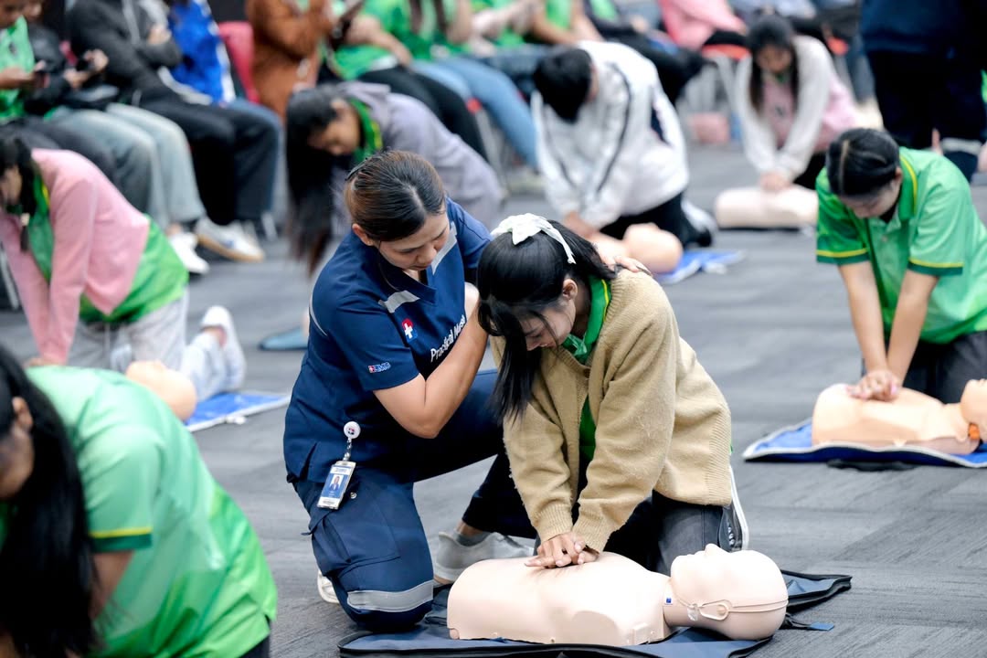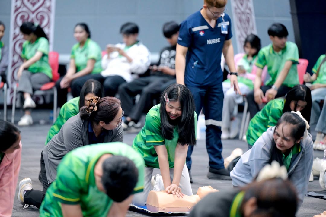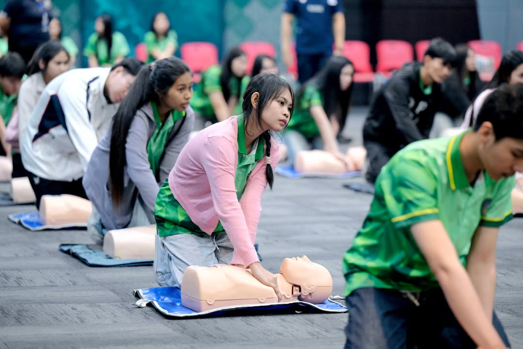 ภายในกิจกรรม นักศึกษาได้เรียนรู้หลักการช่วยฟื้นคืนชีพ (CPR) อย่างถูกต้องตามมาตรฐานสากล พร้อมฝึกปฏิบัติจริงในสถานการณ์จำลอง ตลอดจนการปฐมพยาบาลเบื้องต้น เพื่อให้สามารถนำความรู้ไปประยุกต์ใช้ได้อย่างมั่นใจและมีประสิทธิภาพ