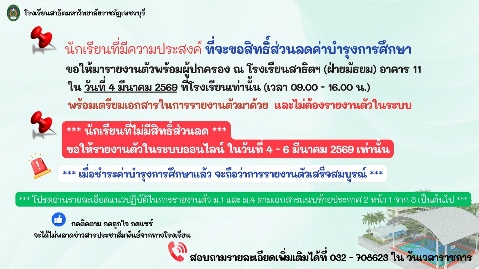 โรงเรียนสาธิตมหาวิทยาลัยราชภัฏเพชรบุรี ประจำปีการศึกษา 2569