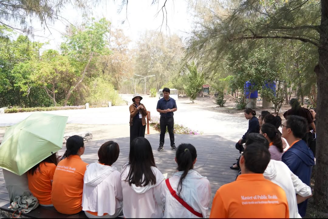 วันที่ 6 มีนาคม 2569 ผู้ช่วยศาสตราจารย์ เรือเอกหญิง ดร.สุพัตรา นุตรักษ์ คณบดีคณะพยาบาลศาสตร์และวิทยาการสุขภาพ พร้อมด้วยผู้ช่วยศาสตราจารย์ ดร.วรรณไพร แย้มมา รองคณบดีฝ่ายบริหาร วิชาการ และยกระดับคุณภาพบัณฑิต นำนักศึกษาต่างชาติในหลักสูตรสาธารณสุขศาสตรมหาบัณฑิต สาขาวิชาสาธารณสุขและการจัดการสุขภาพ เข้าร่วมกิจกรรมศึกษาดูงาน ณ อุทยานสิ่งแวดล้อมนานาชาติสิรินธร จังหวัดเพชรบุรี