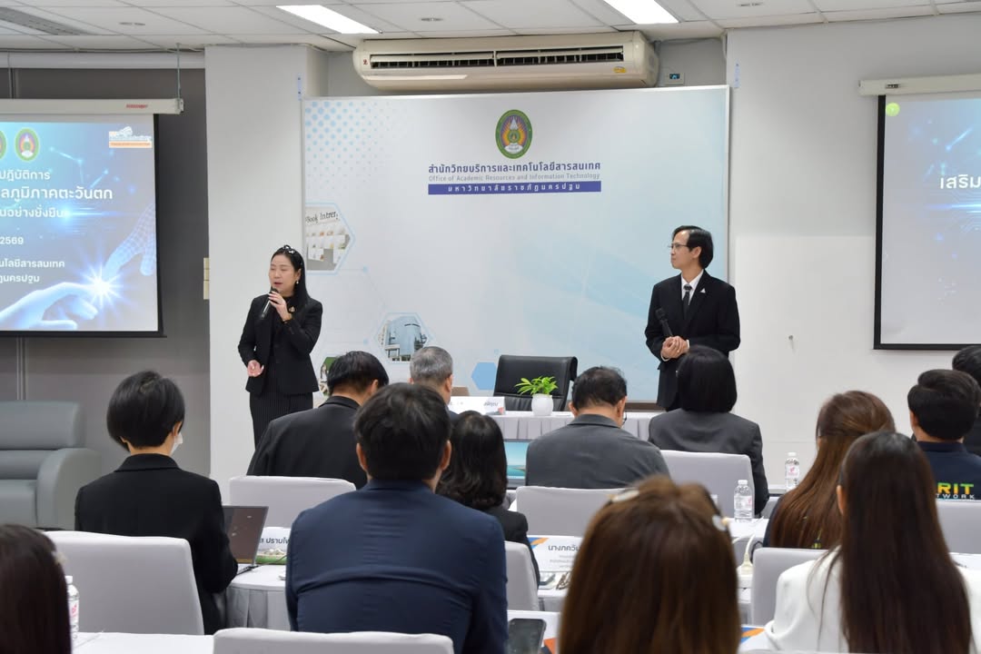 วันที่ 9 มีนาคม 2569 อาจารย์ปิยวรรณ คุสินธุ์ ผู้อำนวยการสำนักวิทยบริการและเทคโนโลยีสารสนเทศ นำบุคลากรสำนักวิทยบริการและเทคโนโลยีสารสนเทศ เข้าร่วมการอบรมเชิงปฏิบัติการ เรื่อง “การเสริมสร้างเครือข่ายดิจิทัลภูมิภาคตะวันตกเพื่อการพัฒนาท้องถิ่นอย่างยั่งยืน” ณ สำนักวิทยบริการและเทคโนโลยีสารสนเทศ มหาวิทยาลัยราชภัฏนครปฐม