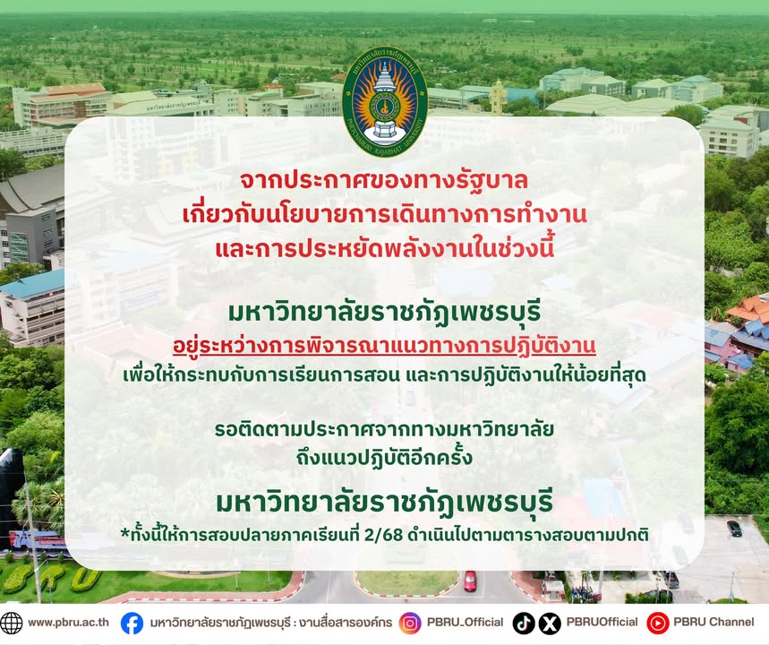 แจ้งบุคลากรมหาวิทยาลัยราชภัฏเพชรบุรี