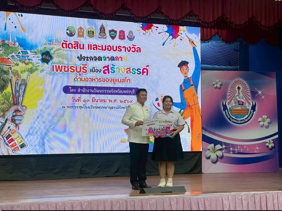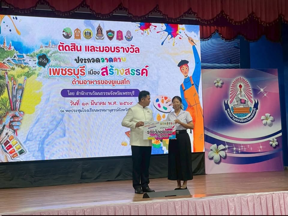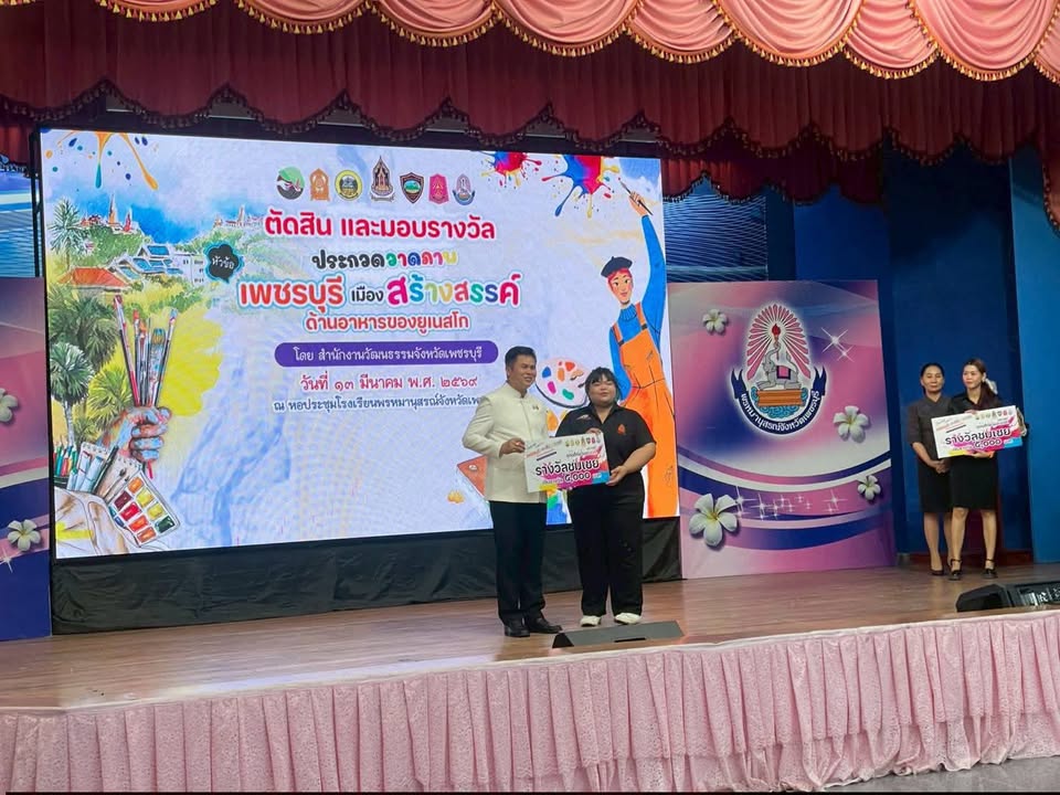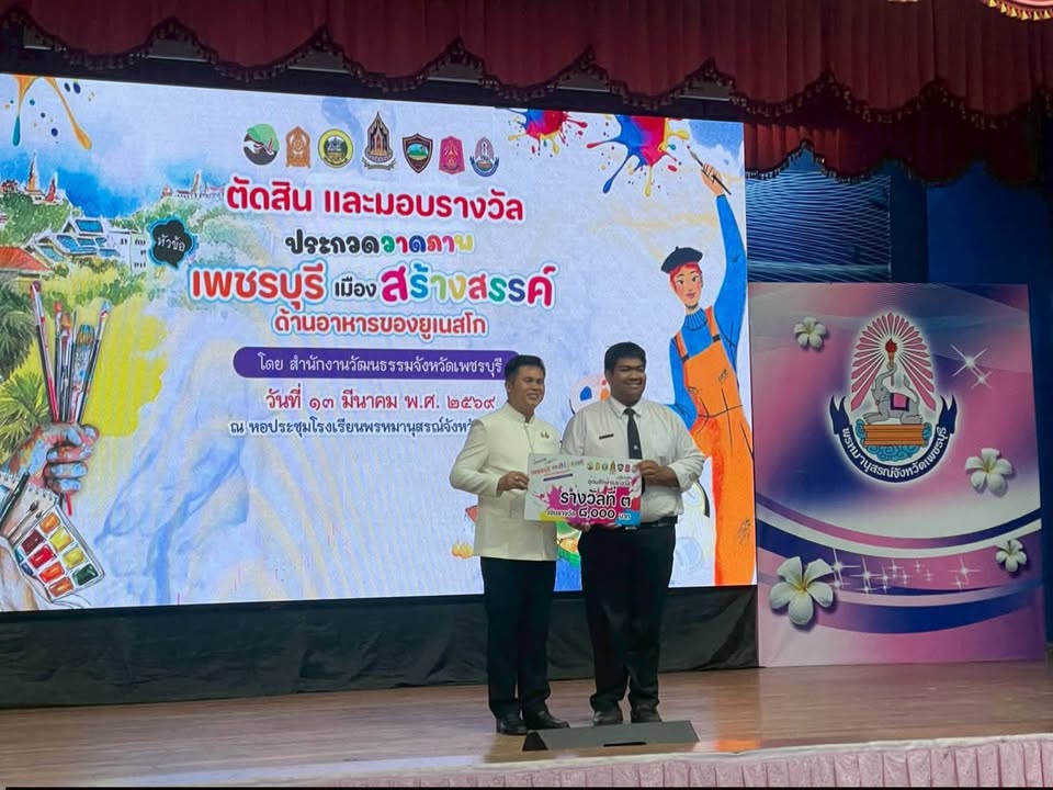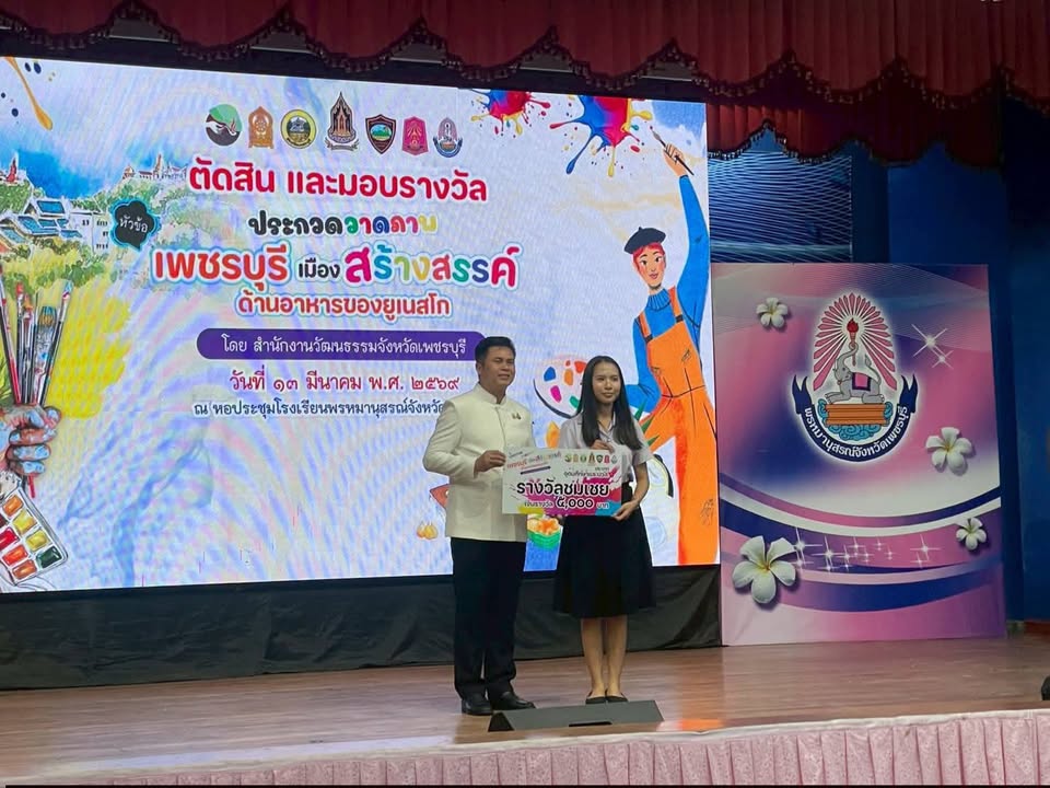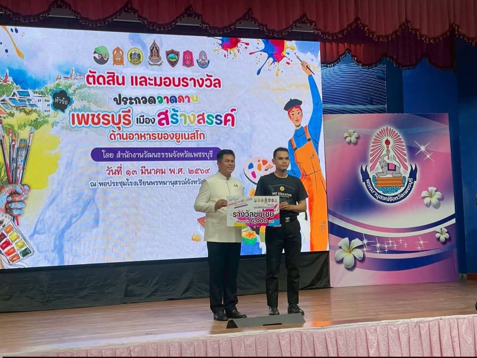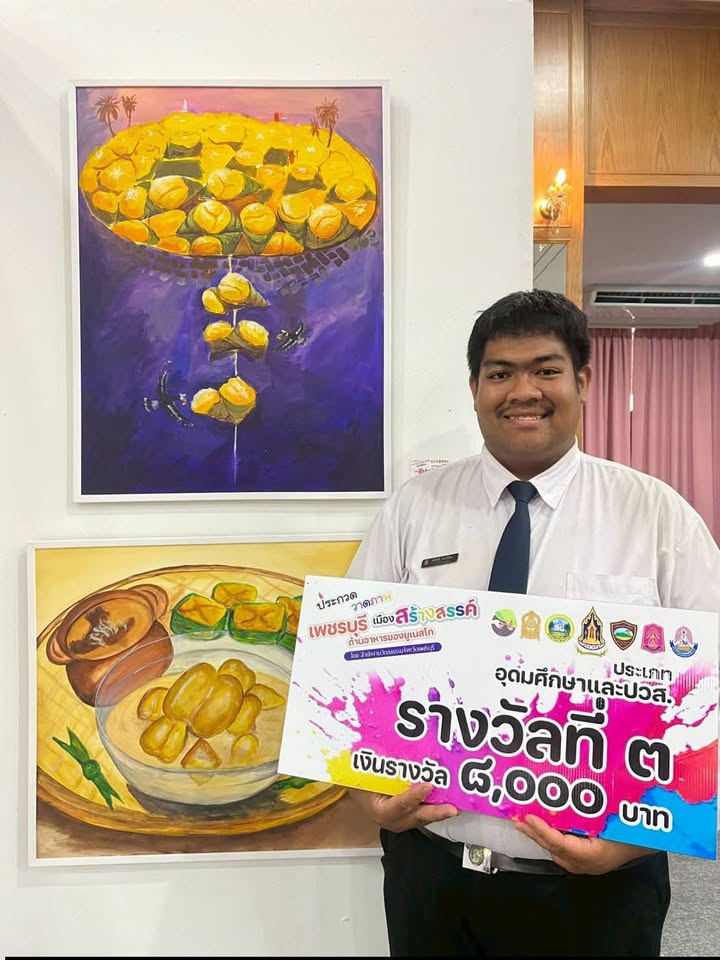 ✨🥇✨ขอแสดงความยินดีกับนักศึกษาสาขาวิชาศิลปศึกษา คณะมนุษยศาสตร์และสังคมศาสตร์ ในโอกาสได้รับรางวัลจากการประกวดวาดภาพระบายสี เด็กและเยาวชน หัวข้อ “เพชรบุรี เมืองสร้างสรรค์ด้านอาหารของยูเนสโก” สืบสานทุนทางวัฒนธรรมของเมืองเพชรผ่านผลงานศิลปะ ในประเภทการแข่งขันระดับอุดมศึกษา/ปวส. ภายใต้โครงการพัฒนาแบบมีส่วนร่วมสู่เมืองสร้างสรรค์ระดับสากล ที่สำนักงานวัฒนธรรมจังหวัดเพชรบุรีได้จัดขึ้น