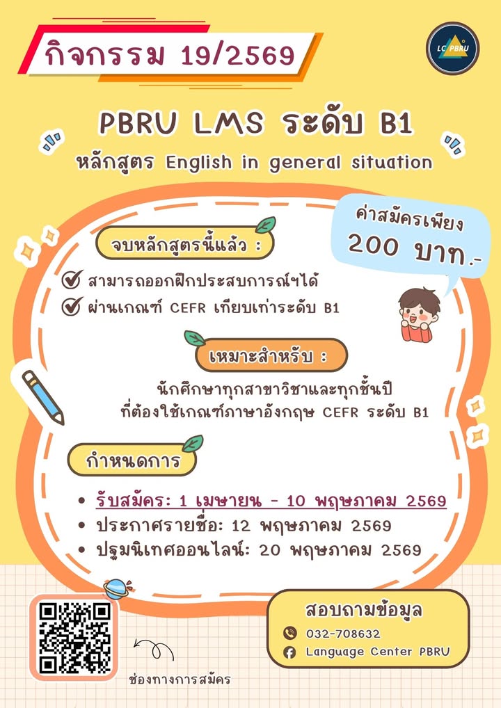 âĪïļ āļāļīāļāļāļĢāļĢāļĄāļāļĩāđ 19/2569 āļŦāļĨāļąāļāļŠāļđāļāļĢāļāļąāļāļāļēāļāļąāļāļĐāļ°āļ āļēāļĐāļēāļāļąāļāļāļĪāļĐāļāļēāļĄāļāļĢāļāļāļĄāļēāļāļĢāļāļēāļ CEFR āļĢāļ°āļāļąāļ B1 āļāđāļēāļāļĢāļ°āļāļ PBRU LMS (online)âĪïļ