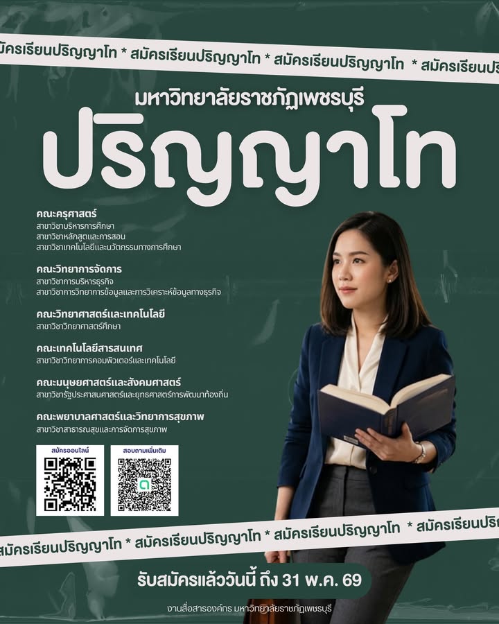 ไปกับหลักสูตร ป.โท ของมหาวิทยาลัยราชภัฏเพชรบุรีได้เลย💚💛