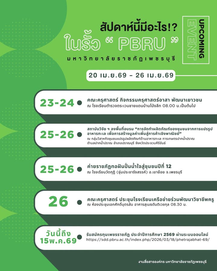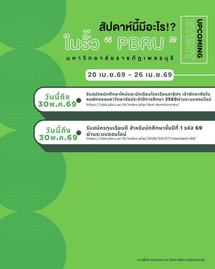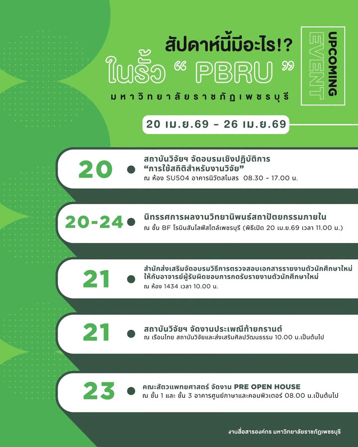 🗓กิจกรรมสัปดาห์นี้ กลับมาคึกคักอีกครั้ง หลังจากผ่านช่วงสงกรานต์ไปแล้ว หลายหน่วยงานมีกิจกรรมที่น่าสนใจ ทั้งบุคลากร นักศึกษา และบุคคลภายนอก