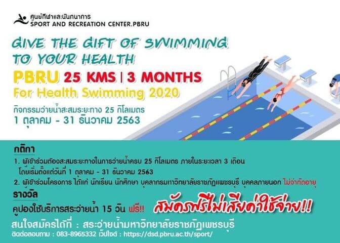 ศูนย์กีฬาและนันทนาการ เปิดรับสมัครผู้สนใจเข้าร่วมกิจกรรมว่ายน้ำสะสมระยะทาง 25 กิโลเมตร