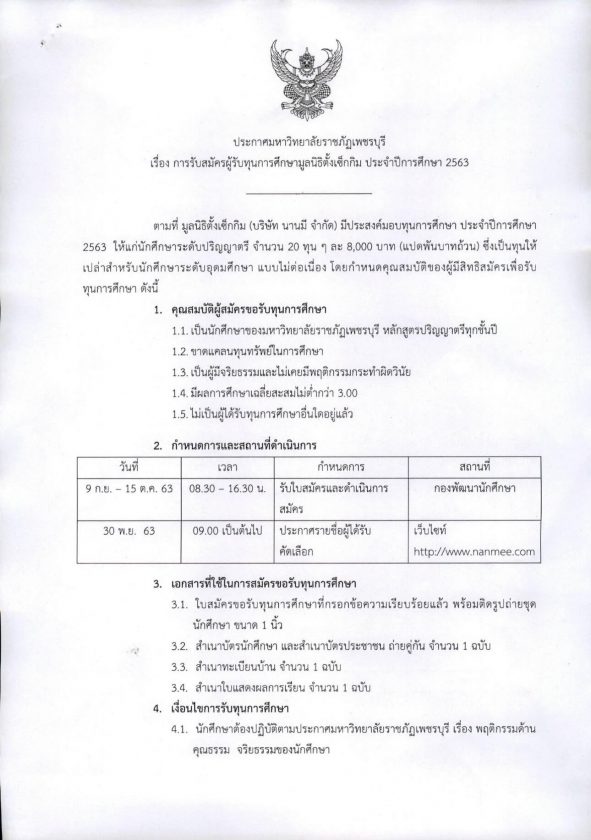 เปิดรับสมัครผู้รับทุนการศึกษามูลนิธิตั้งเซ็กกิม ประจำปีการศึกษา 2563 14 กันยายน 202014 กันยายน 2020piyanunทุนการศึกษา จำนวนผู้ชม : 22 เปิดรับสมัครผู้รับทุนการศึกษามูลนิธิตั้งเซ็กกิม ประจำปีการศึกษา 2563 จำนวน 20 ทุน ทุนละ 8,000 บาท สมัครได้ตั้งแต่วันนี้ – 15 ต.ค.63 ที่กองพัฒนานักศึกษา มหาวิทยาลัยราชภัฏเพชรบุรี สอบถามเพิ่มเติม กองพัฒนานักศึกษา โทร. 032-708610 Facebook iconFacebookTwitter iconTwitterLINE iconLine