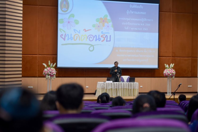 เมื่อช่วงเช้าวันที่ 7 ตุลาคม 2563 ณ ห้องประชุมเสนาะกลิ่นงาม ชั้น 2 คณะพยาบาลศาสตร์และวิทยาการสุขภาพ กองนโยบายและแผน จัดโครงการประชุมถ่ายทอดแผนปฏิบัติราชการ ประจำปี 2564 สู่การปฏิบัติที่ประสบผลสำเร็จ โดยได้รับเกียรติจากผู้ช่วยศาสตราจารย์ ดร.เสนาะ กลิ่นงาน อธิการบดีมหาวิทยาลัยราชภัฏเพชรบุรี เป็นประธานเปิดโครงการ พร้อมมอบนโยบายในการดำเนินงาานให้กับคณะผู้บริหารมหาวิทยาลัยฯ คณบดี หัวหน้าสำนักงาน ผู้อำนวยการกอง หัวหน้าศูนย์ หัวหน้ากลุ่มงาน