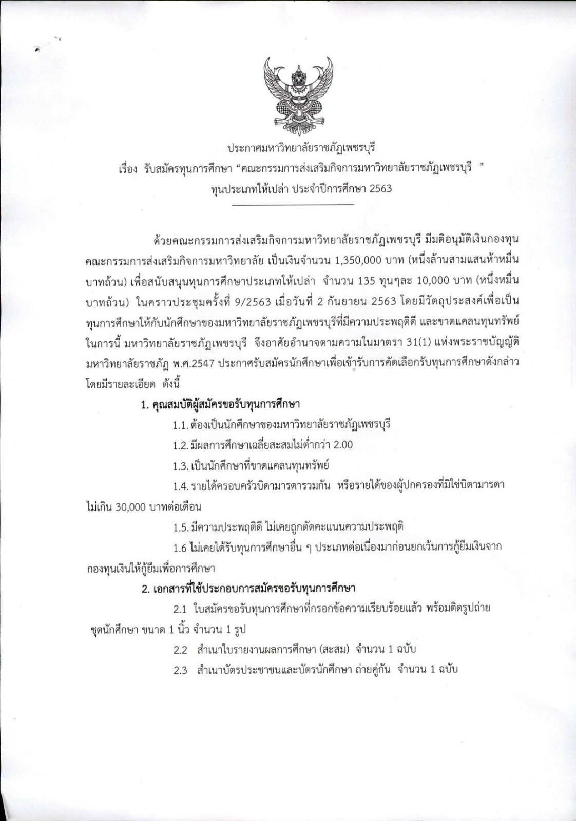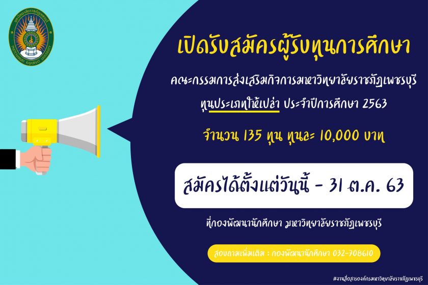 เปิดรับสมัครผู้รับทุนการศึกษา คณะกรรมการส่งเสริมกิจการมหาวิทยาลัยราชภัฏเพชรบุรี