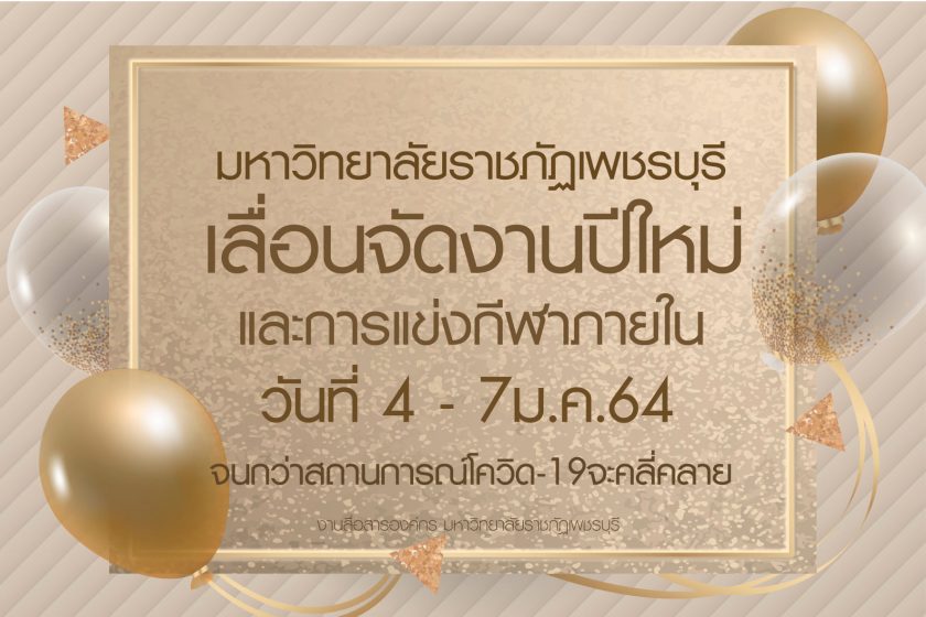 มหาวิทยาลัยราชภัฏเพชรบุรีเลื่อนการจัดงานปีใหม่และการแข่งกีฬาภายในบุคลากร วันที่ 4-7 มกราคม 2564 ออกไปก่อน จนกว่าสถานการณ์ โควิด-19 จะคลี่คลาย 6 มกราคม 20216 มกราคม 2021Soontorn Choosenpomข่าวสำหรับบุคลากร จำนวนผู้ชม : 25 มหาวิทยาลัยราชภัฏเพชรบุรีเลื่อนการจัดงานปีใหม่และการแข่งกีฬาภายในบุคลากร วันที่ 4-7 มกราคม 2564 ออกไปก่อน จนกว่าสถานการณ์ โควิด-19 จะคลี่คลาย Facebook iconFacebookTwitter iconTwitterLINE iconLine