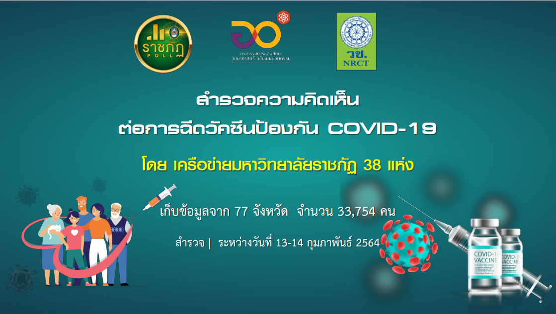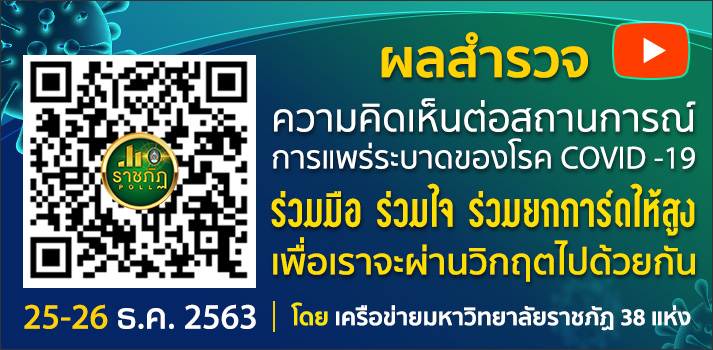ราชภัฏ “โพลล์” เครือข่ายมหาวิทยาลัยราชภัฏ 38 แห่ง 18 มกราคม 202115 กุมภาพันธ์ 2021piyanunข่าวสื่อสารองค์กร จำนวนผู้ชม : 54 ผลการสำรวจ ราชภัฏ “โพลล์” เครือข่ายมหาวิทยาลัยราชภัฏ 38 แห่ง ลำดับที่เผยแพร่โพลล์ไฟล์เอกสาร9.15 ก.พ. 2564ผลสำรวจความคิดเห็นต่อ การฉีดวัคซีนป้องกัน COVID-19 ระหว่างวันที่ 13 – 14 กุมภาพันธ์ พ.ศ. 2564PDF8.11 ก.พ. 2564ผลสำรวจการวางแผนทำกิจกรรมสำคัญในสถานการณ์การแพร่ระบาดของโควิด-19 กุมภาพันธ์ เดือนแห่งความรัก เดือนแห่งความสุข เดือนแห่งการทำบุญ!! แบบการ์ดไม่ตกPDF7.1 ก.พ. 2564ผลสำรวจความคิดเห็นต่อ การเรียนการสอนออนไลน์ในสถานการณ์การแพร่ระบาดของโควิด-19PDF6.3 ม.ค. 2564ผลสำรวจความคิดเห็นต่อสถานการณ์การแพร่ระบาดของโรคโควิด-19 “ร่วมมือ ร่วมใจ ร่วมยกการ์ดให้สูง เพื่อเราจะผ่านวิกฤตไปด้วยกัน”PDF5.23 ธ.ค. 2563ผลสำรวจ….การ์ดอย่าตก รับผิดชอบต่อสังคม ช่วยกันควบคุมและป้องกันการแพร่ระบาดของโรคโควิด-19 เพื่อกระตุ้นเศรษฐกิจและส่งเสริมการท่องเที่ยวไทยPDF4.23 พ.ย. 2563ผลความเชื่อมั่นต่อมาตรการในการป้องกันการระบาดของโควิด-19 ในเขตติดต่อชายแดนไทย-มาเลเซียPDF3.2 พ.ย. 2563ผลความเชื่อมั่นต่อมาตรการในการป้องกันการระบาดของโควิด-19 ในเขตติดต่อชายแดนไทย-เมียนมาPDF2.24 พ.ค. 2563ผลประเมินความเชื่อมั่นในการป้องกันการแพร่ระบาดของไวรัส COVID-19PDF1.11 พ.ค. 2563ผลการสำรวจความคิดเห็นของประชาชนในการป้องกันการติดเชื้อไวรัสโควิด-19PDF Facebook iconFacebookTwitter iconTwitterLINE iconLine