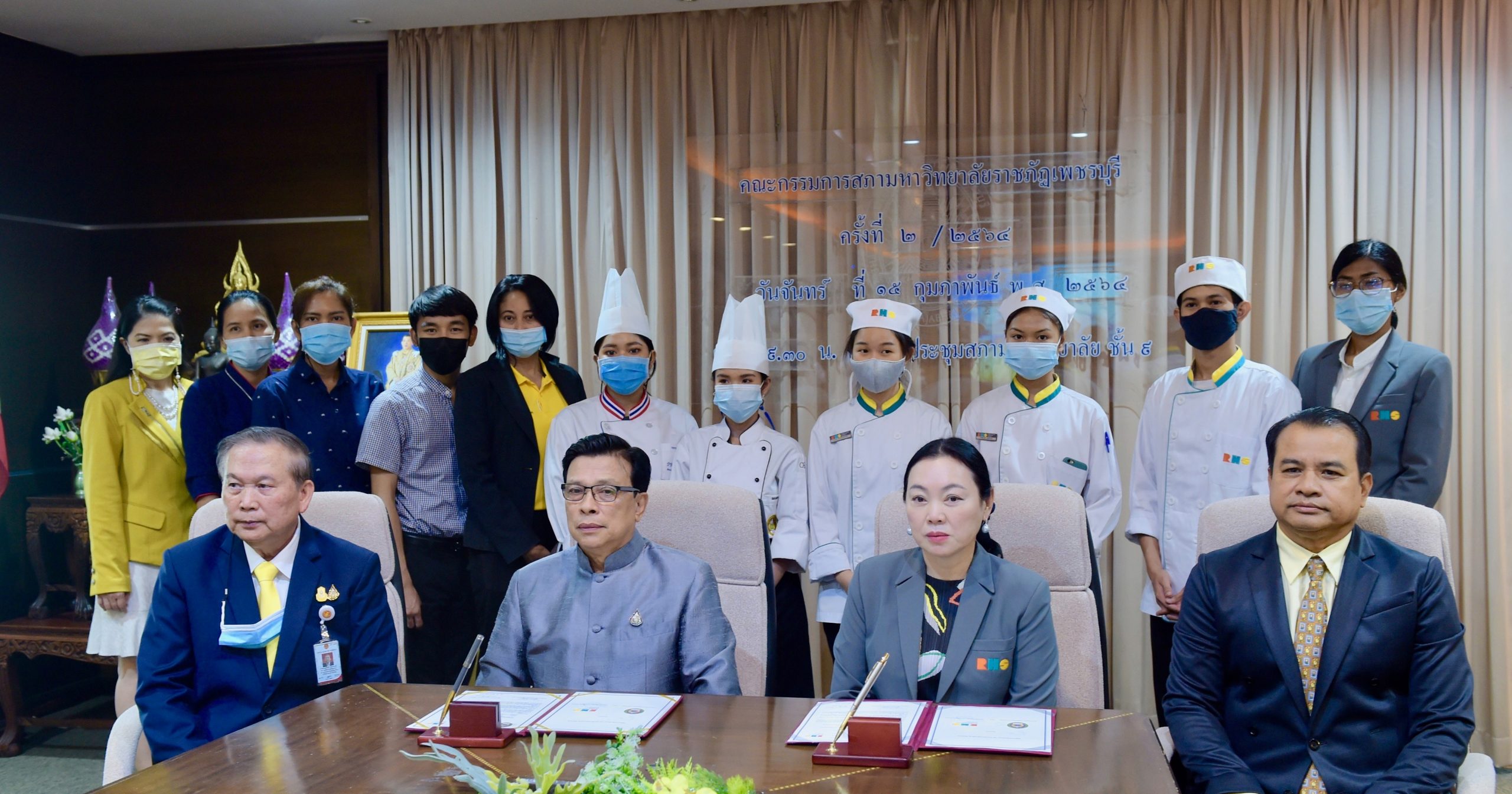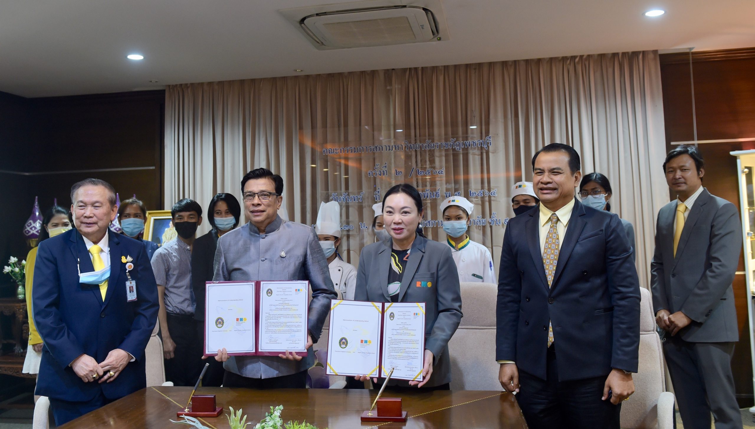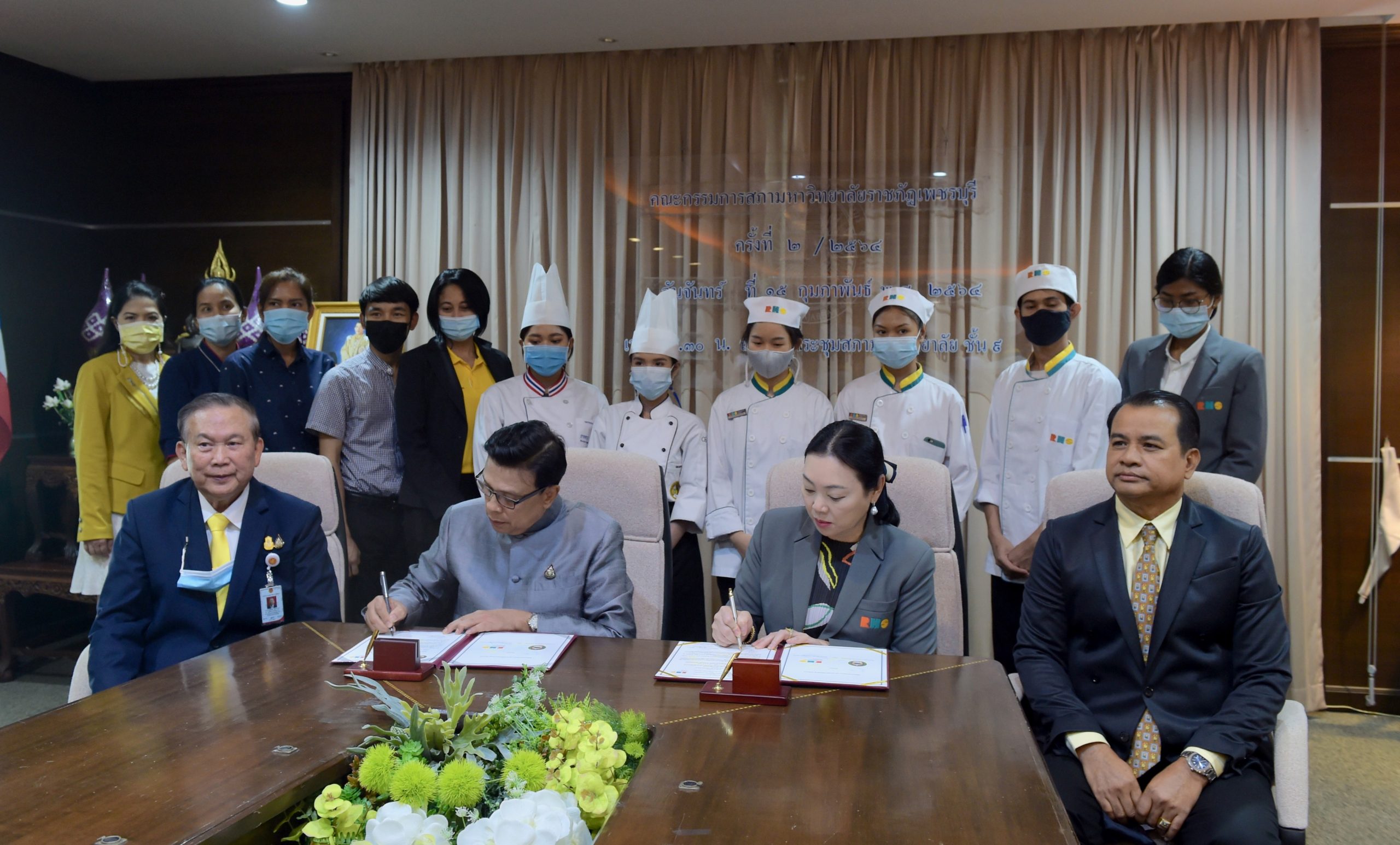 เมื่อวันที่ 15 กุมภาพันธ์ ที่ผ่านมา ณ ห้องประชุมราชภัฏสภา ชั้น 9 อาคารวิทยาภิรมย์ มหาวิทยาลัยราชภัฏเพชรบุรี ผู้ช่วยศาสตราจารย์ ดร.เสนาะ กลิ่นงาม อธิการบดีมหาวิทยาลัยราชภัฏเพชรบุรี ลงนามความร่วมมือกับคุณปิยะมาน เตชะไพบูลย์ ผู้อำนวยการโรงเรียนการโรงแรมและท่องเที่ยวรีเจ้นท์ ชะอำ ในการสร้างความร่วมมือและความเข้าใจในการส่งเสริมการพัฒนาทางวิชาการและกิจกรรมการแลกเปลี่ยนเรียนรู้ การถ่ายทอดองค์ความรู้ร่วมกัน ตลอดจนการรับหรือแลกเปลี่ยนนักศึกษาที่จะเข้าศึกษาต่อ