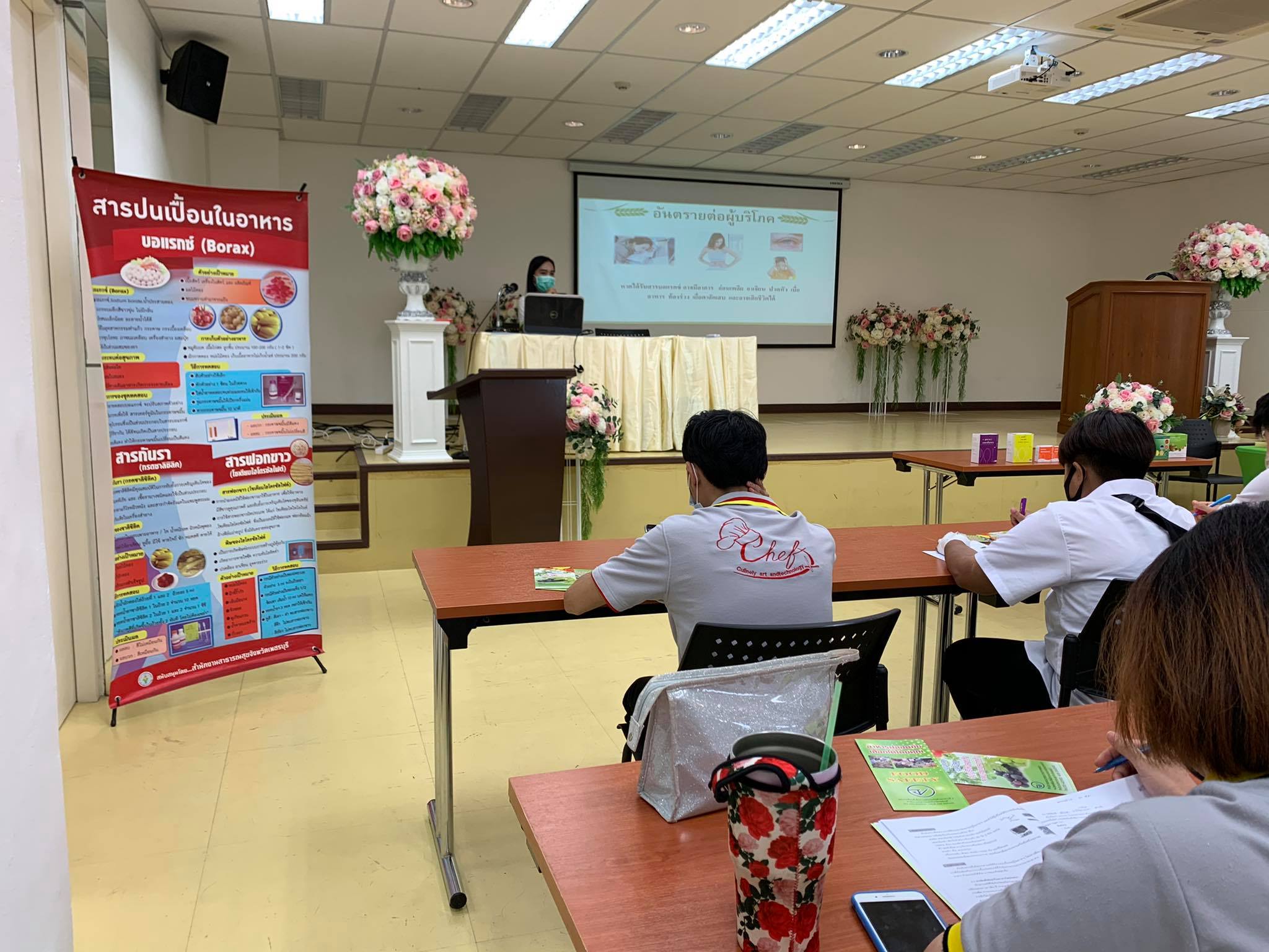 โดยได้รับเกียรติทีมวิทยากรจากสำนักงานสาธารณสุขจังหวัดเพชรบุรี ที่ได้ให้ความรู้ในหัวข้อทหลักการและมาตรฐานการสุขาภิบาลอาหารในสถานประกอบกิจการด้านอาหาร สุขวิทยาส่วนบุคคลของผู้สัมผัสอาหาร และกฎหมายที่เกี่ยวข้องกับผู้สัมผัสอาหาร
